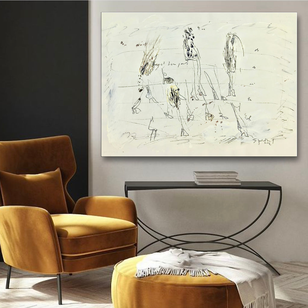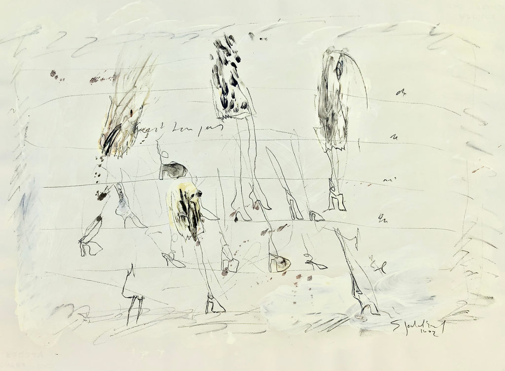 « TON PAS » is a sort of musical score where the heels of women's shoes replace the musical notes. How many times I have been lulled by the hammering of the heels of women's shoes on the asphalt of the Paris metro. These typical sounds of Parisiennes walking at a brisk pace still resonate in my head. This noise, reflected and amplified by the “Metro” faience that covers the vaults of the tube is for me specific to the center Paris metro in the morning. The HEELS IN THE PARISIAN METRO series pays tribute to women, especially Parisiennes. This series was realised in 2002.
