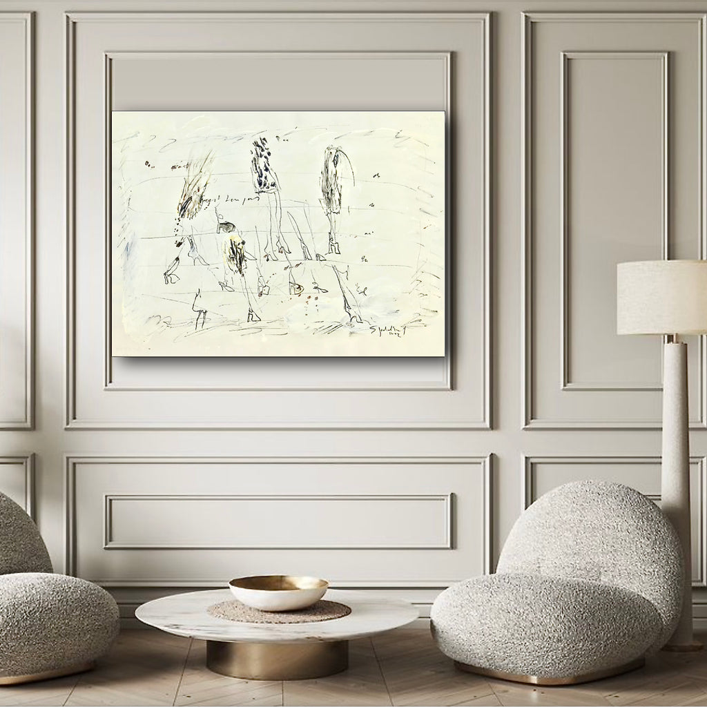 Mixed technique: Pigments, glue, black ink, charcoal and lead pencil on paper