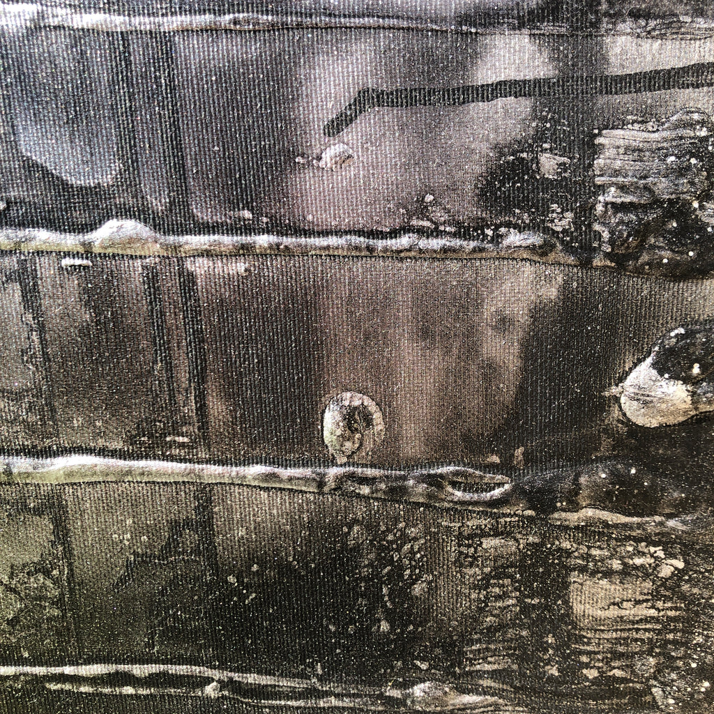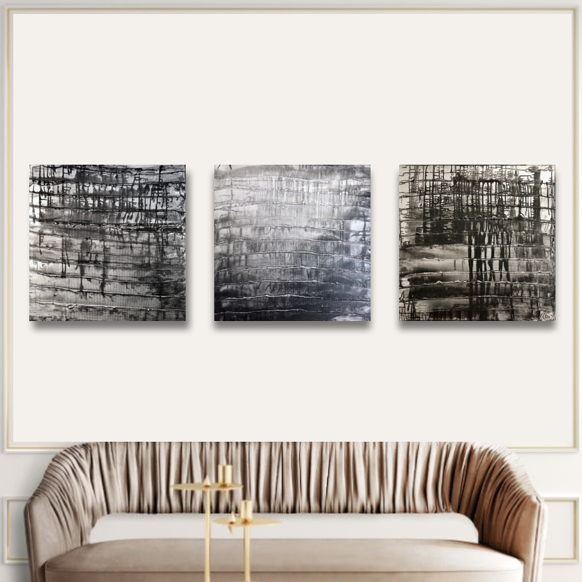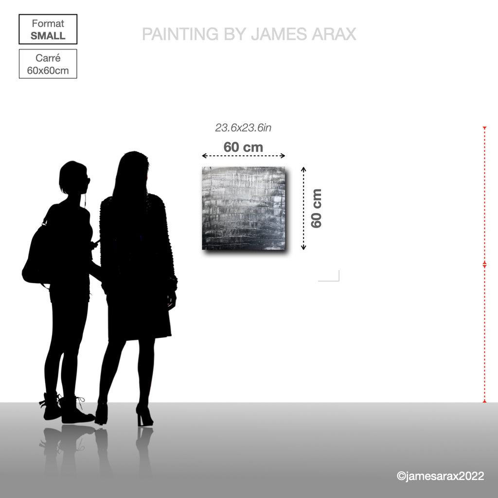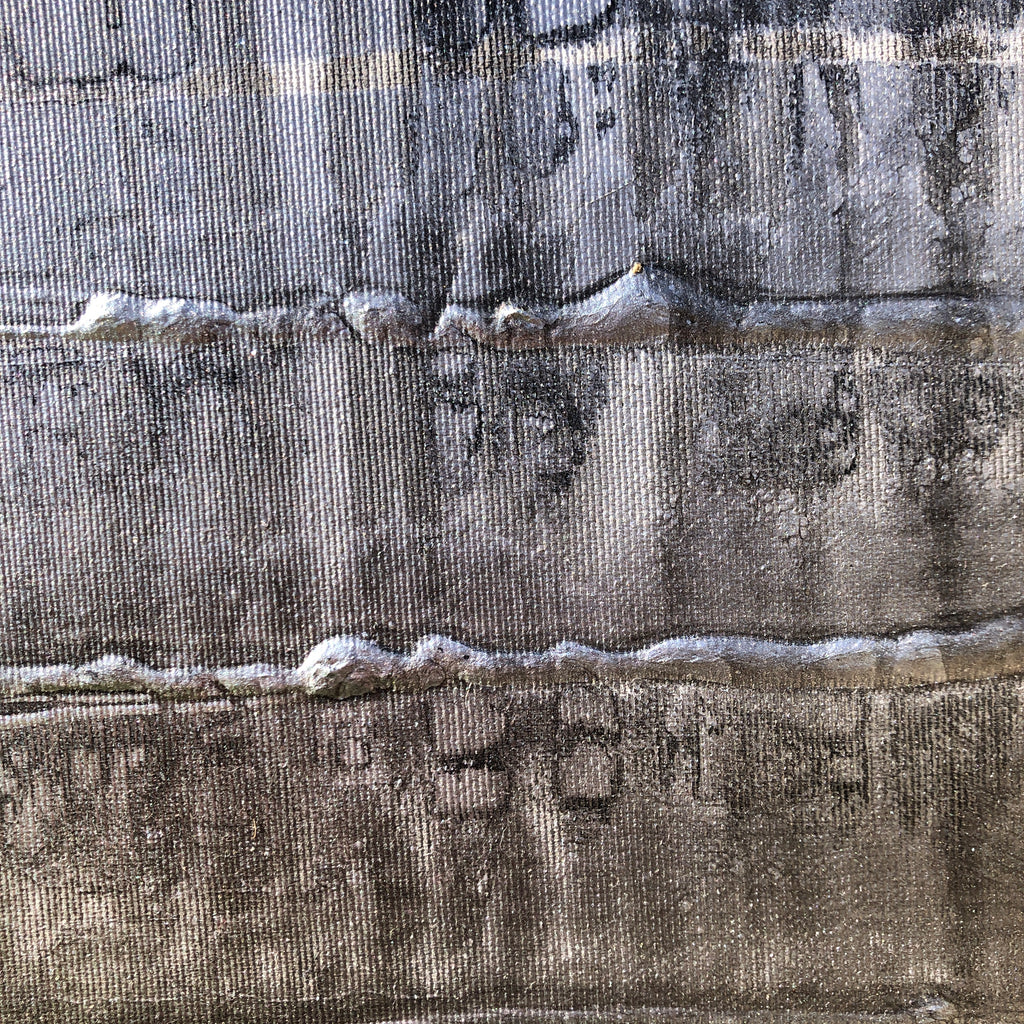 Mixed technique: Silver&glitter pigments, glue, black ink on canvas