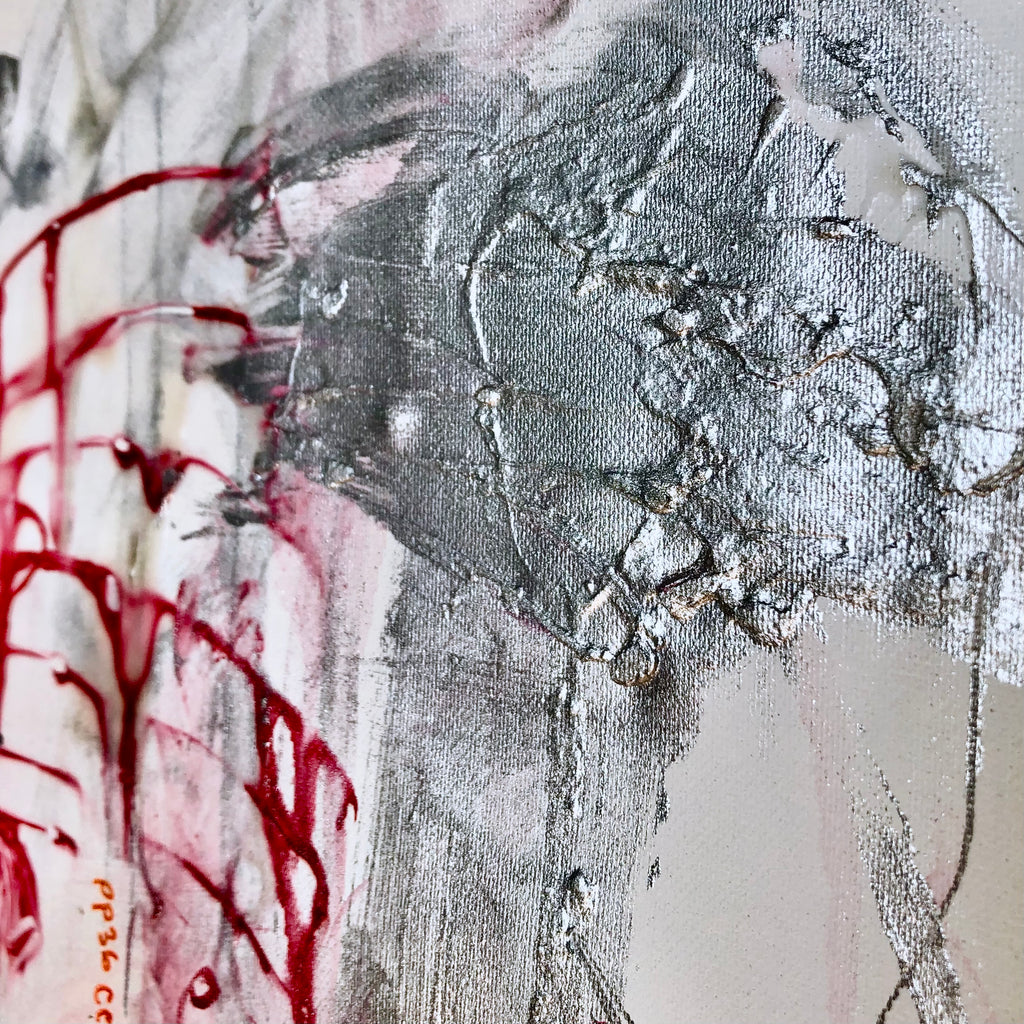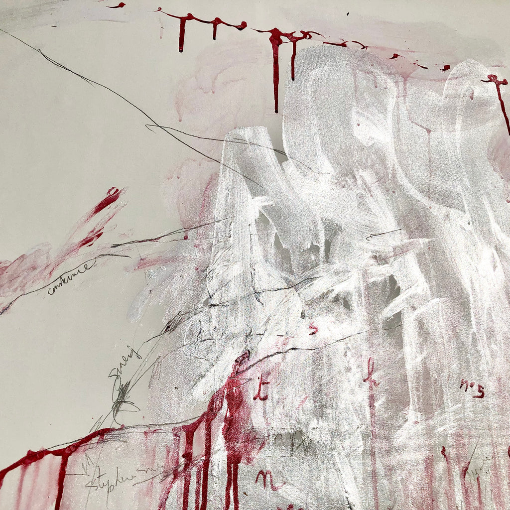 … This canvas shines and changes with the light and the weather outside because of its silver pigments. Even in this pictures you can see how the silver gray of the left side can move to silver white on the right side, just because of the sun rays. You have more than one impression in front of the canvas, depending on the weather and the moment of the day. A new kind of impressionism proposed by the contemporary painter James Arax.