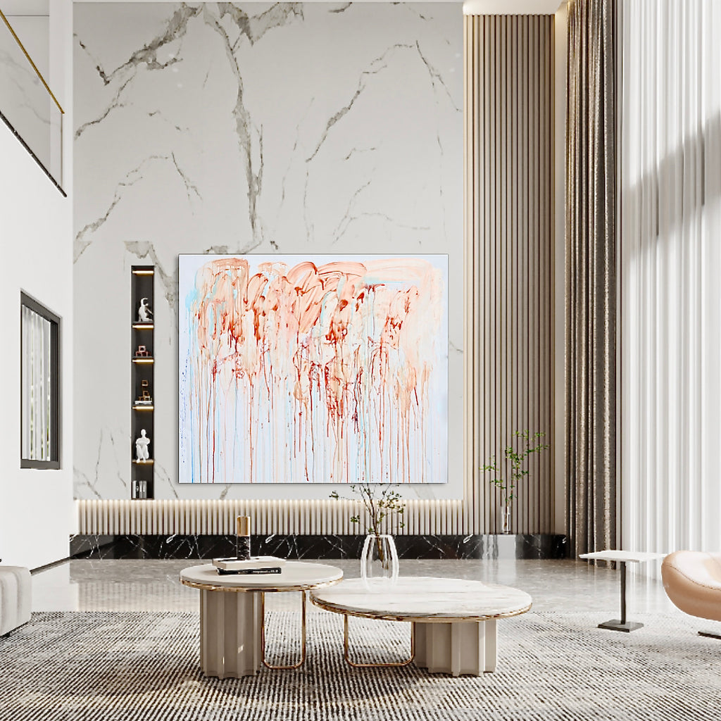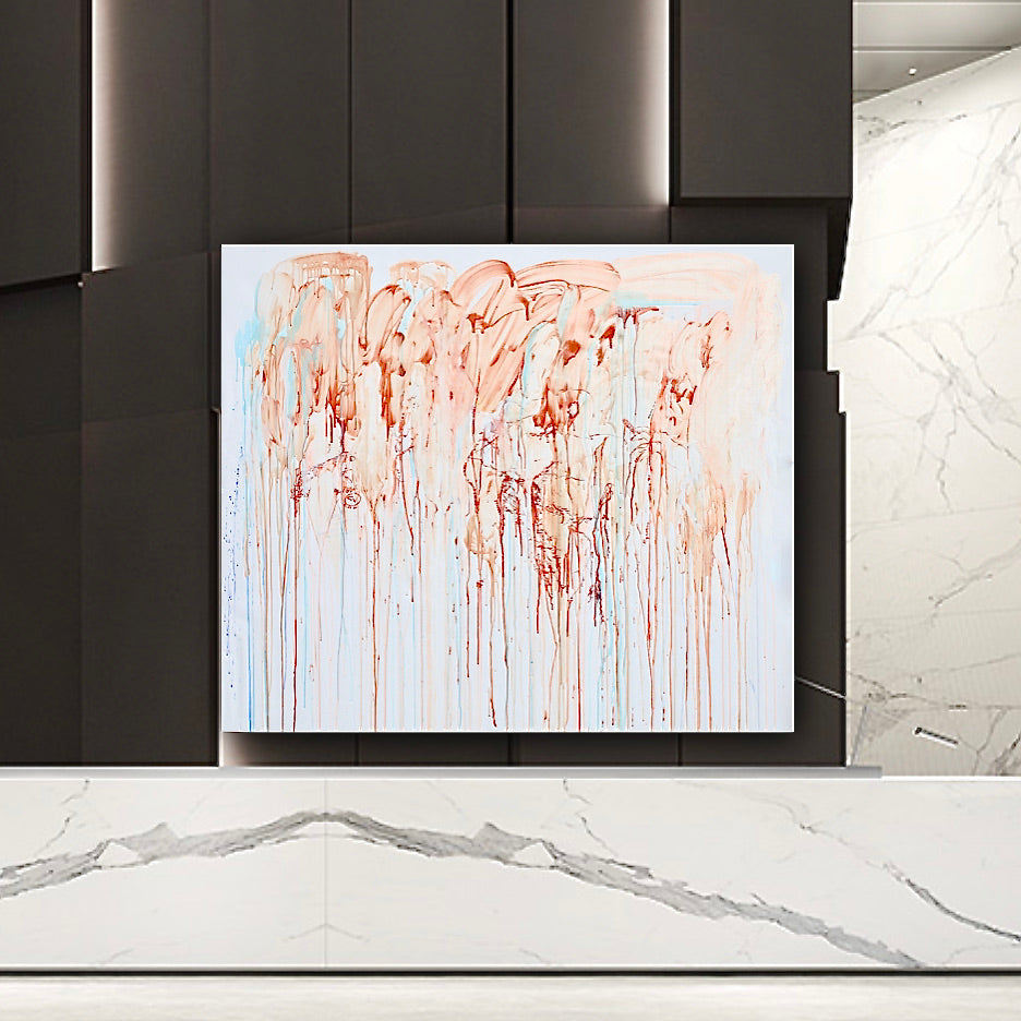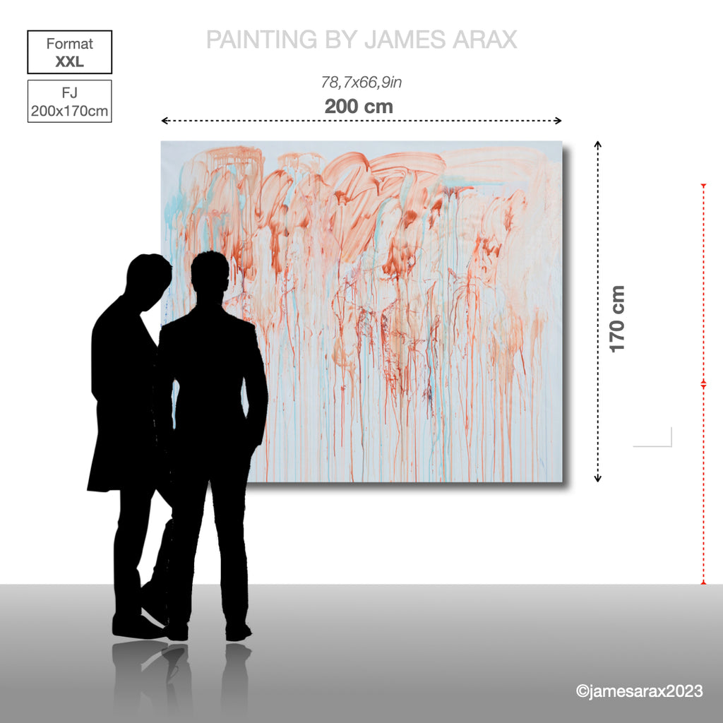 This XL painting evokes the Summer and its orange sunsets. Inspired by James’s model for this abstract portrait of a cigar smoker. A cotton-like clouds atmosphere on the canvas…