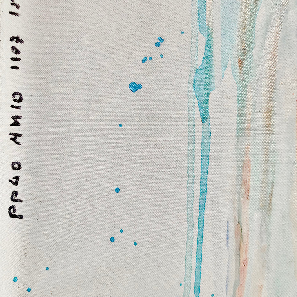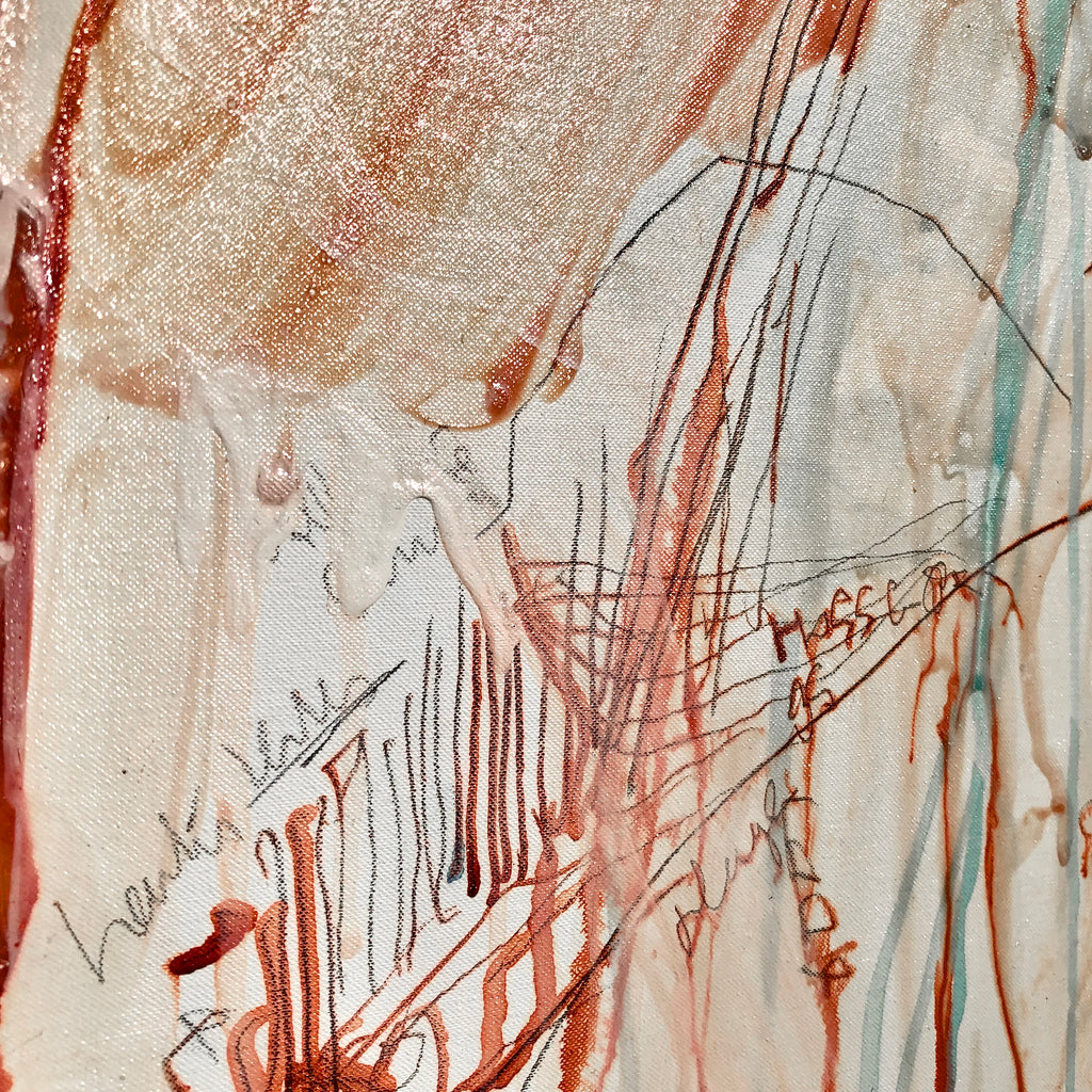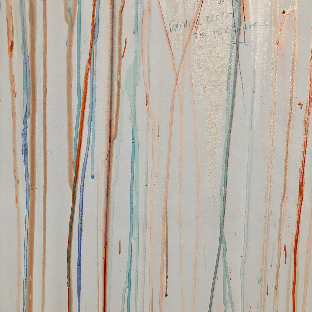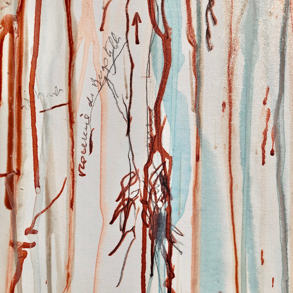Mixed technique: Colored pigments, glue, orange&blue ink on nylon canvas
