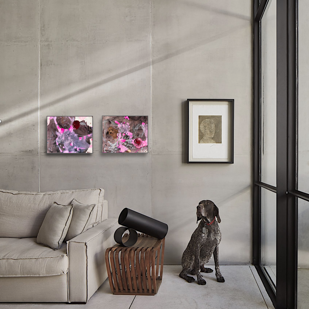This is an artwork on paper from a series of 21 XS paintings made after a « Presence painting session » with a model James Arax met at Champagne Pommery experience in les caves Pommery in Reims.