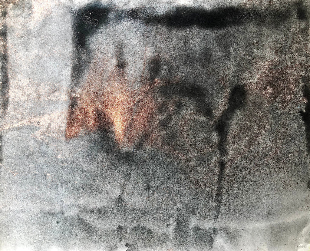 Mixed technique: Copper and colored pigments, glue, ink on paper