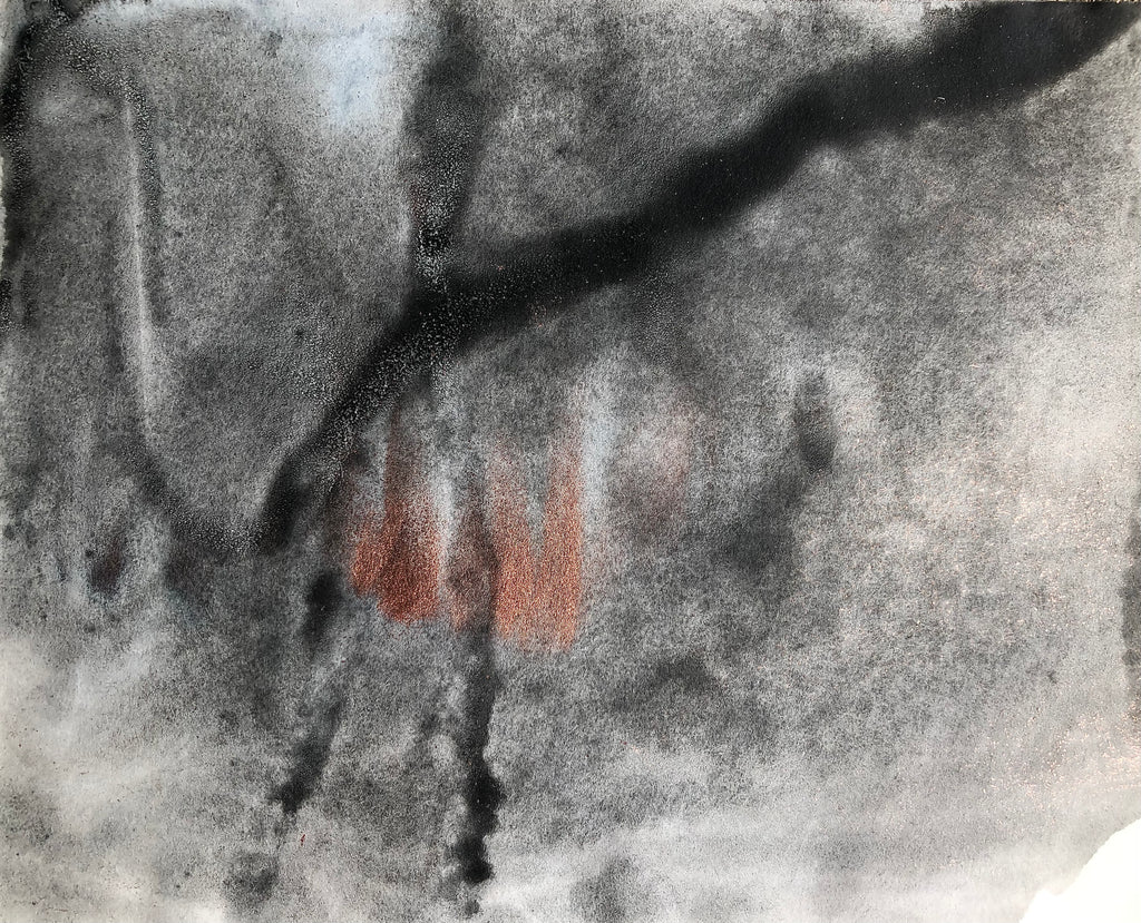 Mixed technique: Copper and colored pigments, glue, ink on paper