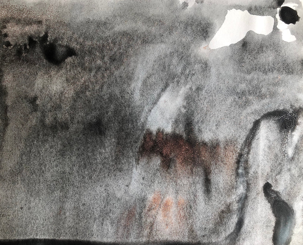 Mixed technique: Copper and colored pigments, glue, ink on paper