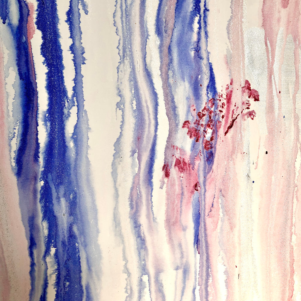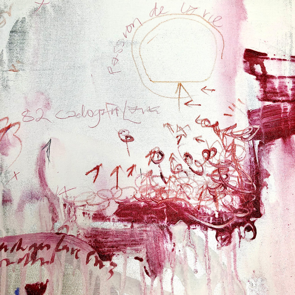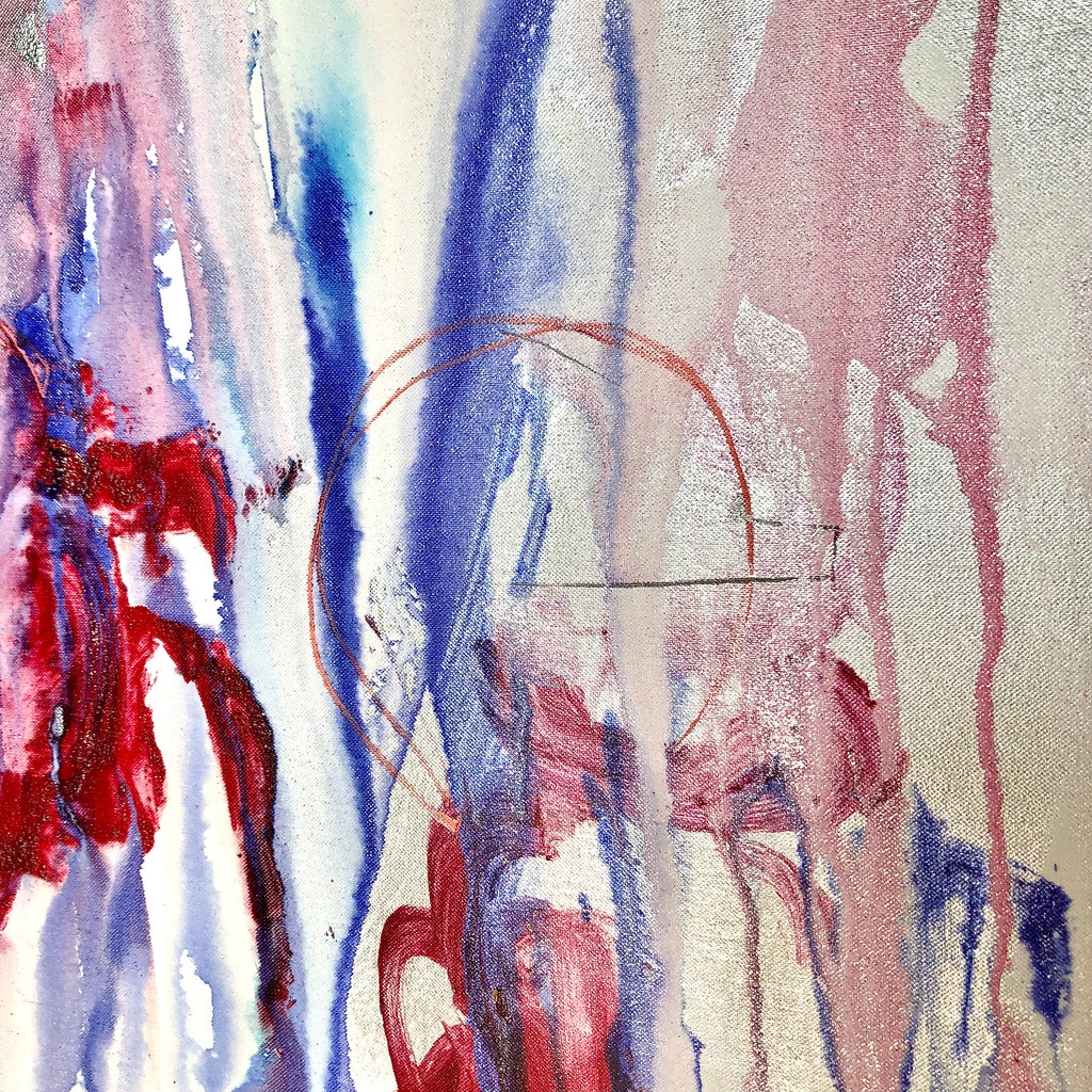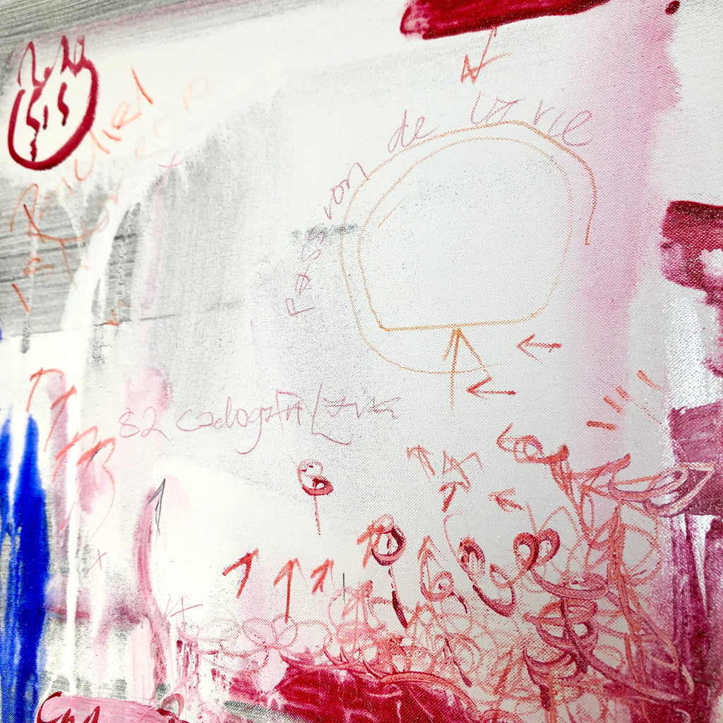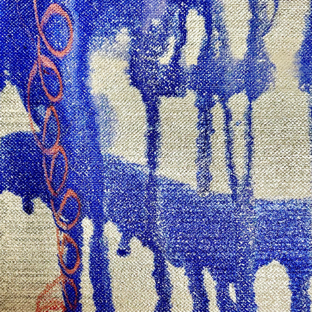 Mixed technique: Colored pigments, color ink & pencil, glue, on canvas
