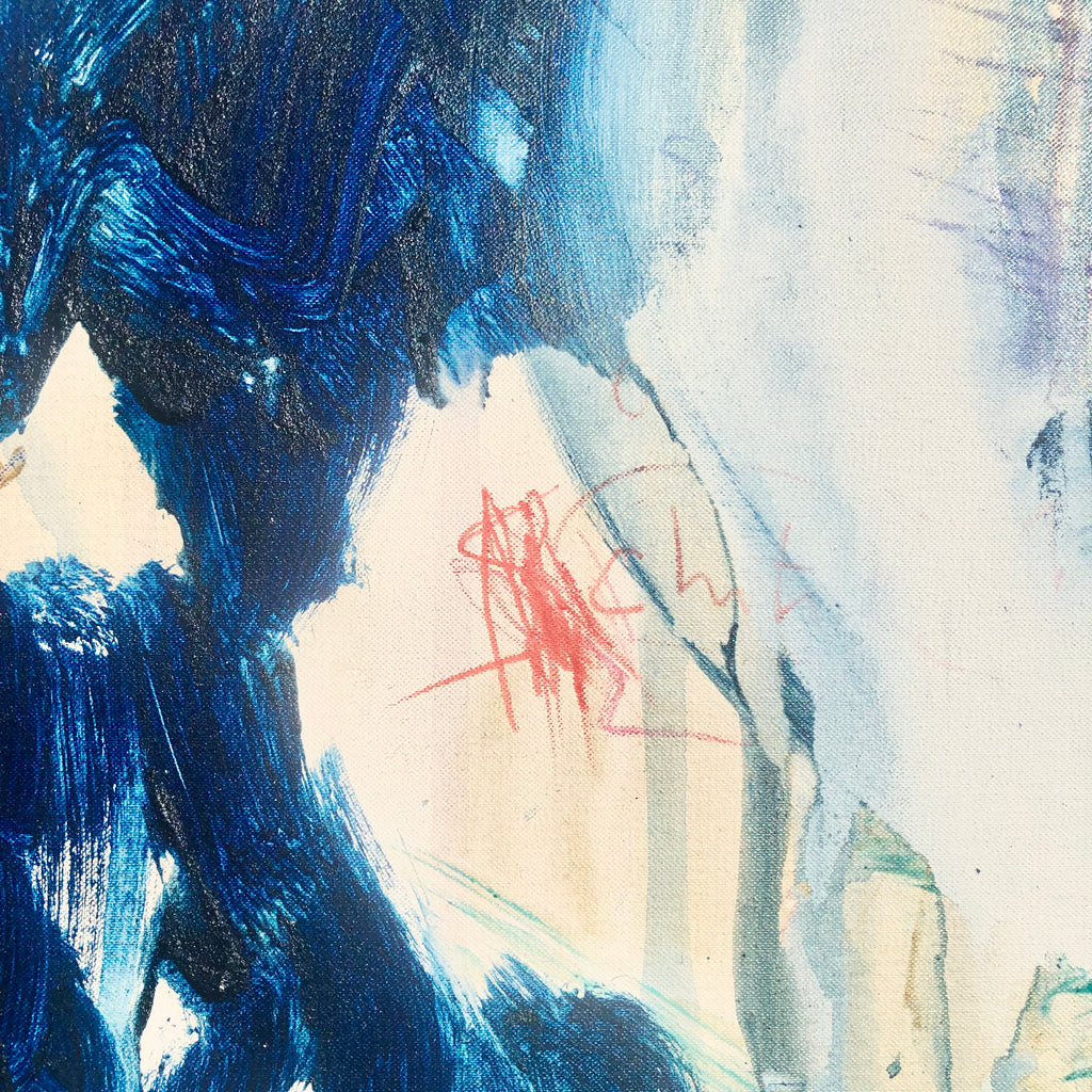 … On the white canvas the blue drips are like a waterfall. James and the model talked a lot about Africa during the painting session and James had in mind the wonderful Victoria Falls. James says that this painting is lush. He imagines a powerful and lush nature, visible in the accumulation of colors on the canvas. He imagines a territory where you can get lost…« Là, tout n’est qu’ordre et beauté, luxe, calme et volupté. » Charles Baudelaire