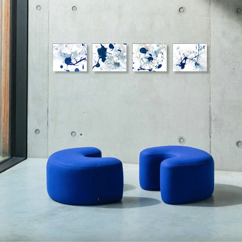 I always make Xsmall paintings on paper after the large size canvas « Presence painting ». I use the liquid paint left of the large canvas. It is a way of physically linking these two types of creations.This painting on paper is associated with the performance Presence painting n°47.James imagines a powerful and lush nature, visible in the accumulation of colors on the canvas. He imagines a territory where you can get lost...