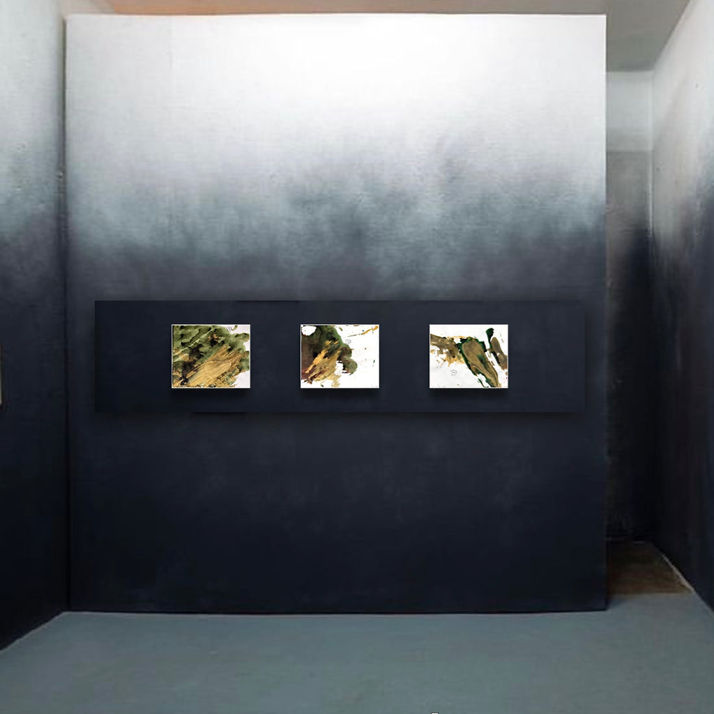 Mixed technique: Acrylic, ink, gold pigment, glue on paper