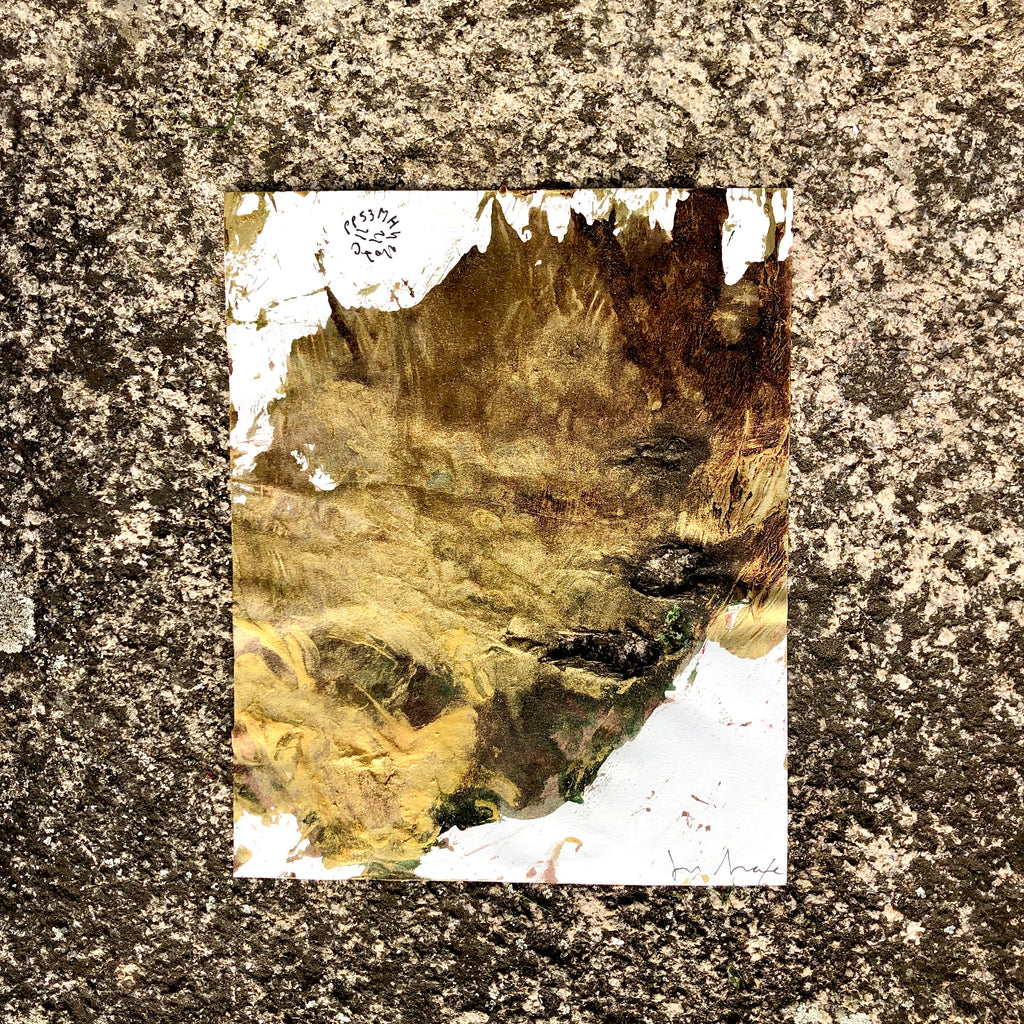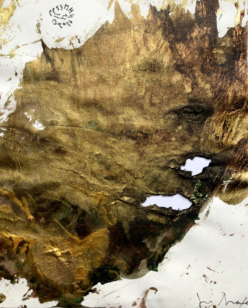 Mixed technique: Acrylic, ink, gold pigment, glue on paper