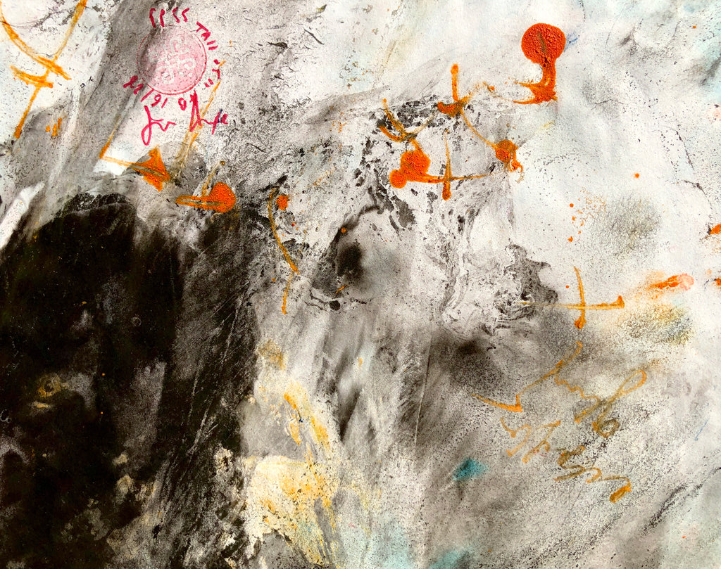 Mixed technique: Acrylic, charcoal pencil, color ink on paper