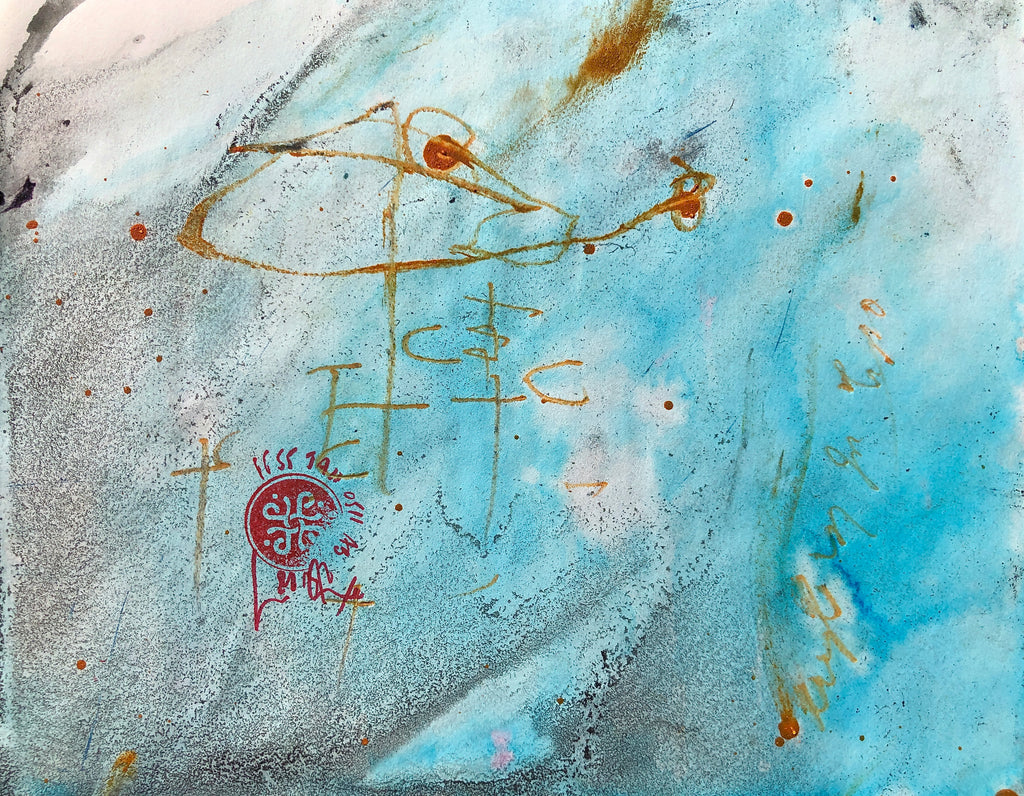 Mixed technique: Acrylic, colored pigments, charcoal pencil, color ink on paper