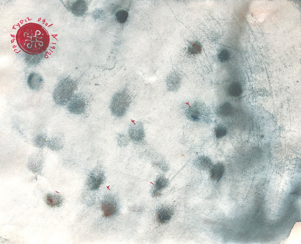 ...During the PRESENCE PAINTING performance, James always makes a series of small drawings on paper with the still fresh paint from the MATRIX presence painting (200x170cm), here "PP56 - The Sniper"
