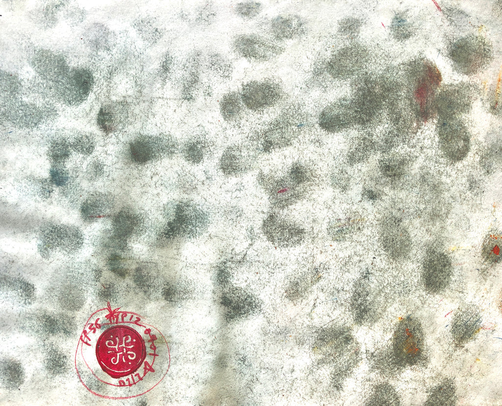 ...During the PRESENCE PAINTING performance, James always makes a series of small drawings on paper with the still fresh paint from the MATRIX presence painting (200x170cm), here "PP56 - The Sniper"