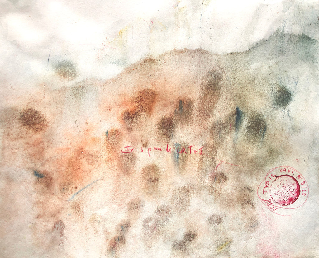 ...During the PRESENCE PAINTING performance, James always makes a series of small drawings on paper with the still fresh paint from the MATRIX presence painting (200x170cm), here "PP56 - The Sniper"