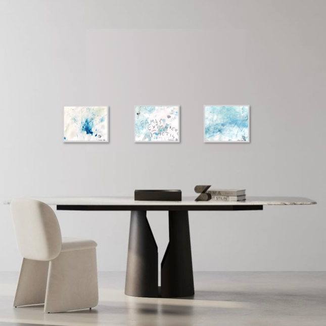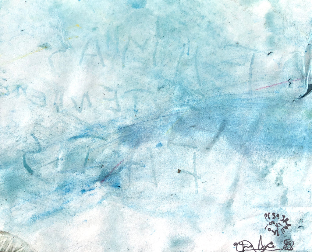 ...During the PRESENCE PAINTING performance, James always makes a series of small drawings on paper with the still fresh paint from the MATRIX painting (200x170cm), here " PP59 - The architect I Famam Extendere Factis".