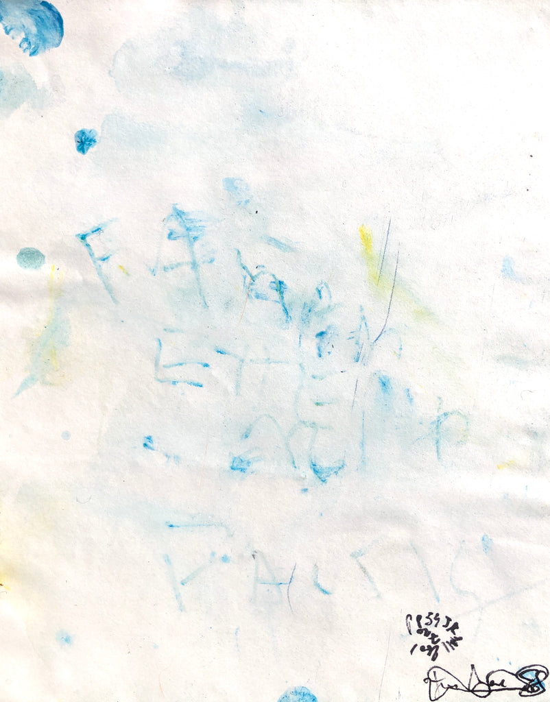 ...During the PRESENCE PAINTING performance, James always makes a series of small drawings on paper with the still fresh paint from the MATRIX painting (200x170cm), here " PP59 - The architect I Famam Extendere Factis".