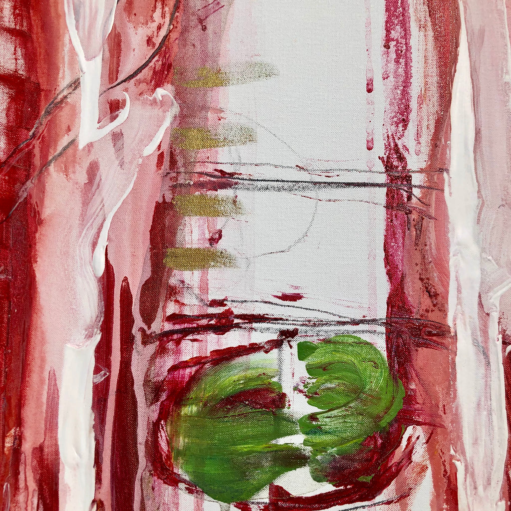 … The painting is full of refinement with all its delicate lines of light colors. You can also feel the generous and flourishing nature with the greens, reds, and pinks. It brings both movement and softness. James was inspired by all the precise description of his model, a writer from Norway. This painting offers space, a large window over the beautiful nature. It could fit into any kind of interior, bringing life and landscape.
