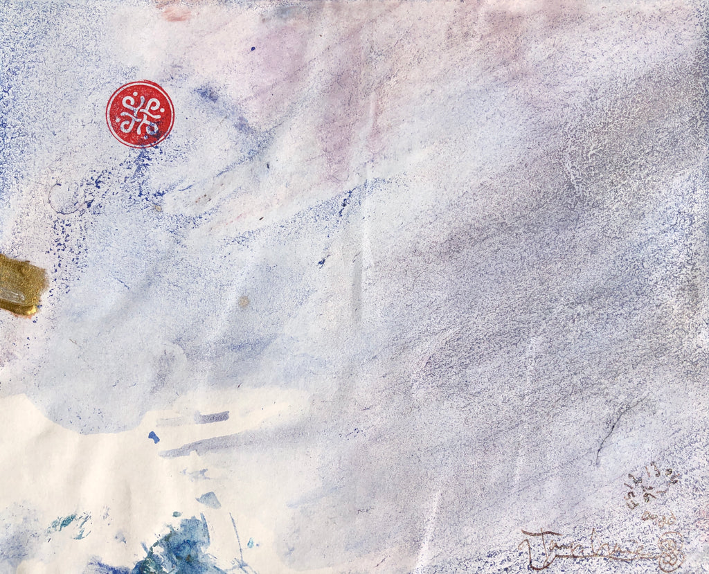 James added his seal -logo- in red to certified the painting and create an artistic vibration in the artwork.