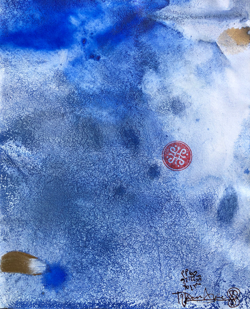 James added his seal -logotype- in red to certified the painting and create an artistic vibration in the artwork.