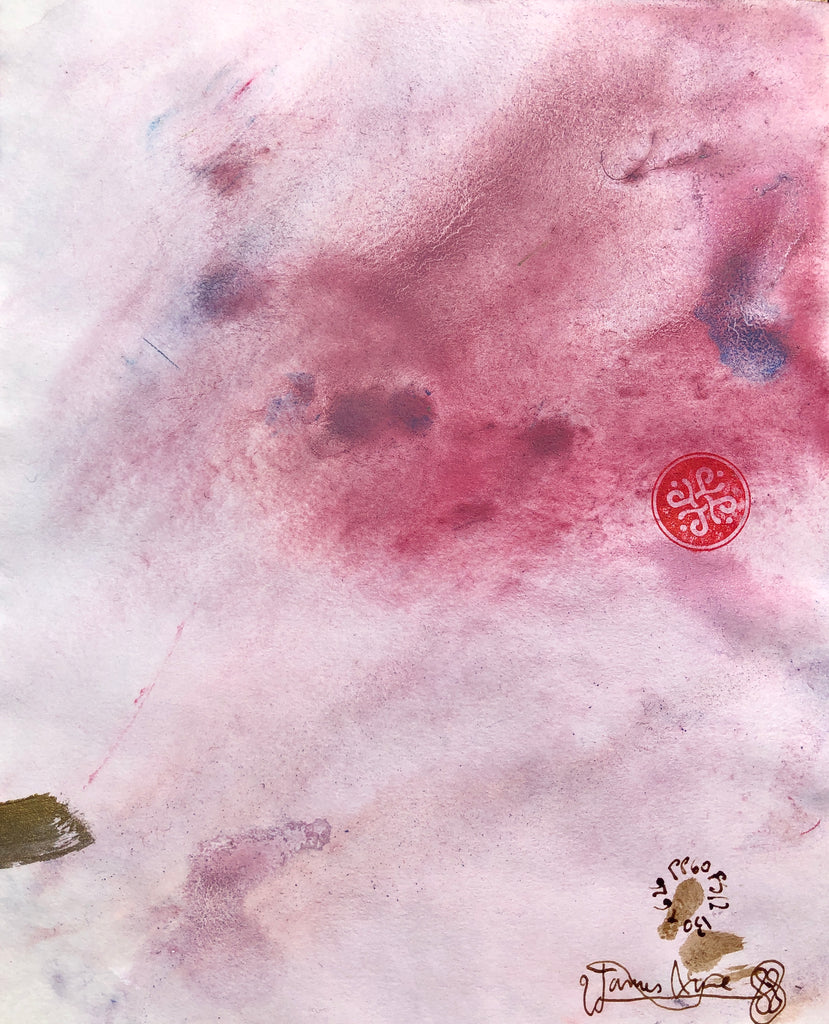 James added his seal -logotype- in red to certified the painting and create an artistic vibration in the artwork.