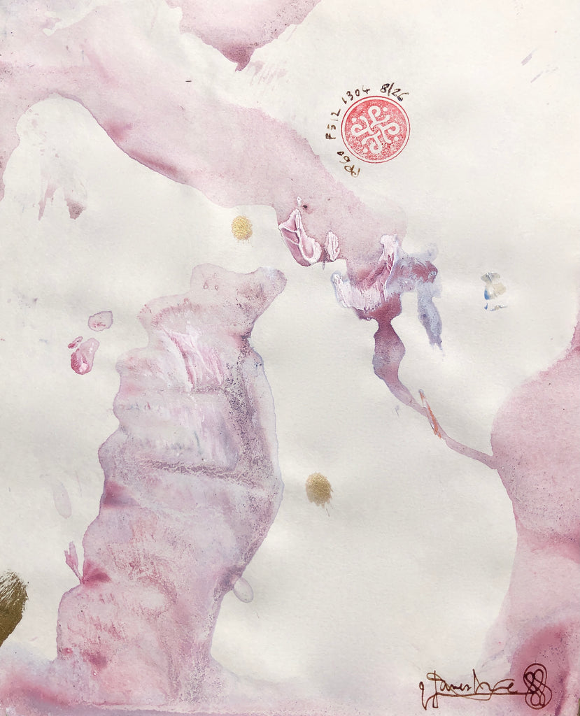 James added his seal -logotype- in red to certified the painting and create an artistic vibration in the artwork.