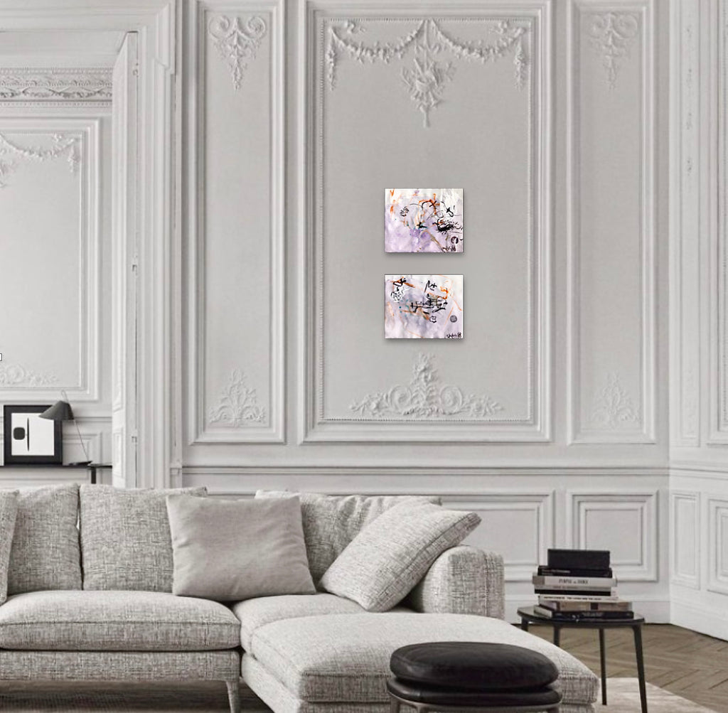 "I always make Xsmall paintings on paper after the large size canvas Presence painting. I use the liquid paint left of this large canvas to make the drawings. It is a way of physically linking these two types of creations."