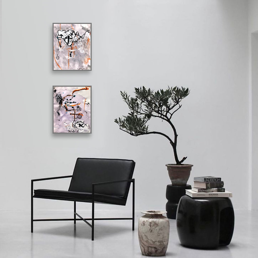 "I always make Xsmall paintings on paper after the large size canvas Presence painting. I use the liquid paint left of this large canvas to make the drawings. It is a way of physically linking these two types of creations."