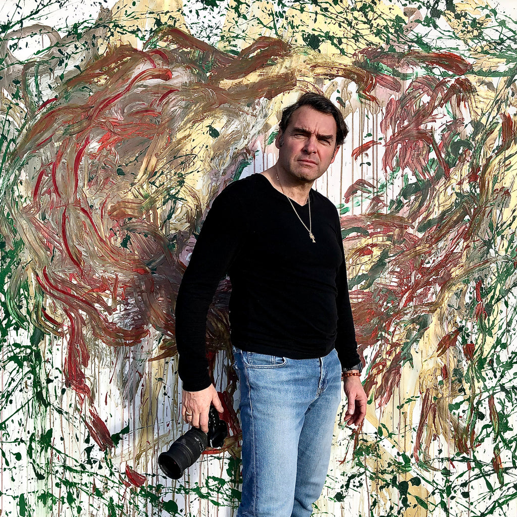 … The Dragon, the most important symbol of power in China brings good luck for people in East Asian culture! James was inspired by the Chinese zodiac sign of his son « The dragon » which is fascinating. This artwork is very personal because the model is James’s baby boy. The painting session is also very special because James paints in his open air studio, in the middle of the woods, in a wild forest called « Les Bois d’Arax ». Indeed, for James, the forest is like the last refuge in a highly urbanized world where there is no mystery anymore. Next to his Dordogne Valley studio, James Arax creates places in nature to paint large formats. He looks for places in nature that are completely wild and surrounded by trees and vegetation. This is how this stunning painting was made.