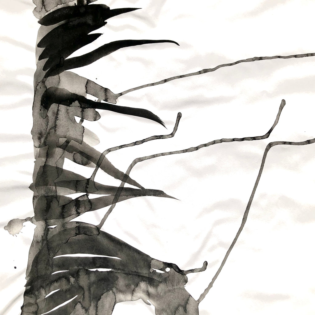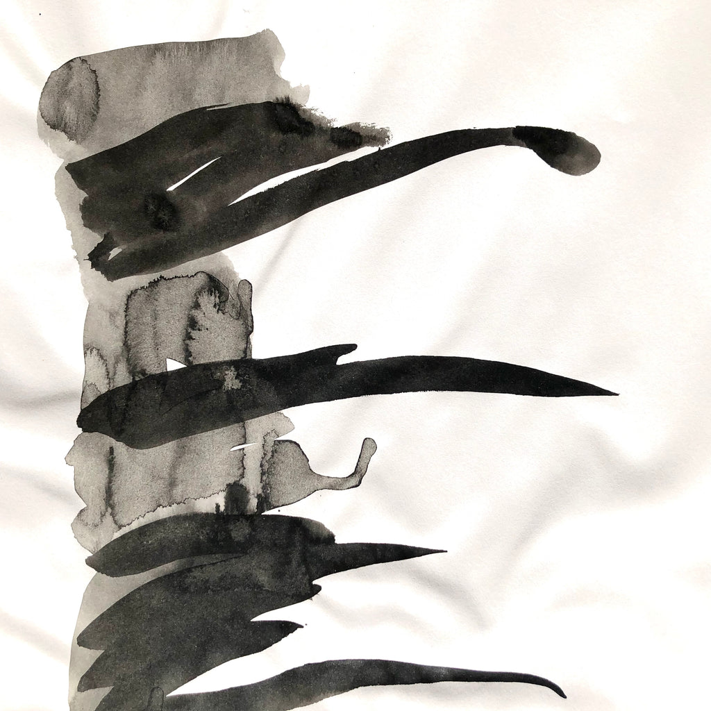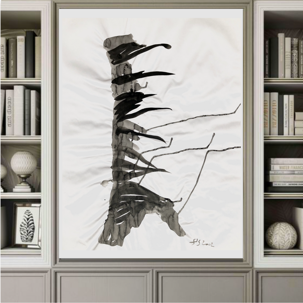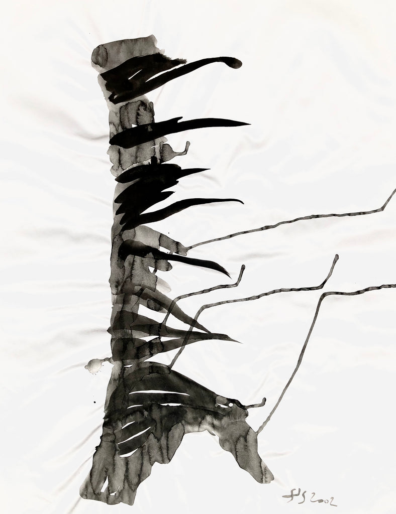 This work is between drawing and painting. It is made with black Indian ink on thin paper.