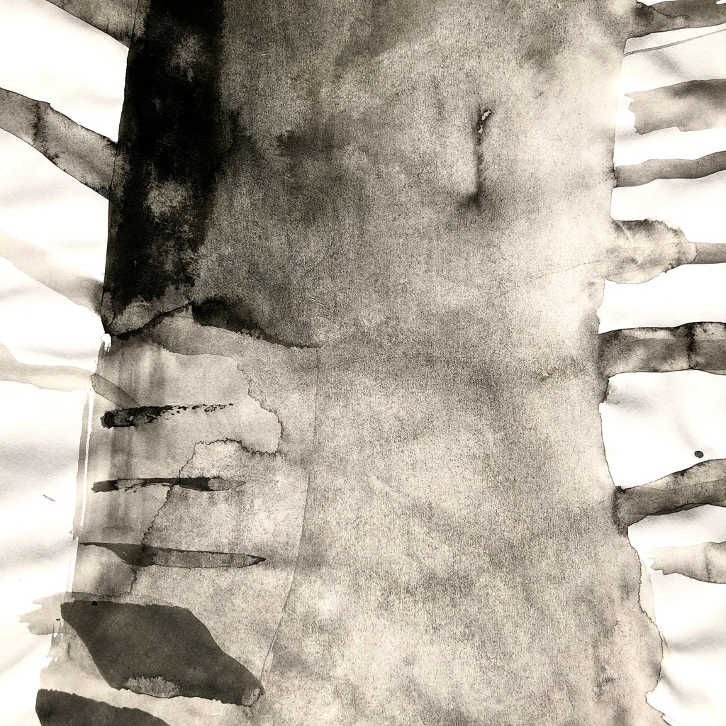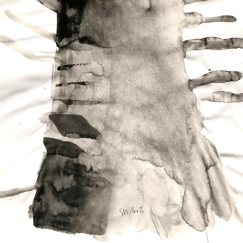 This work is between drawing and painting. It is made with black Indian ink on thin paper.