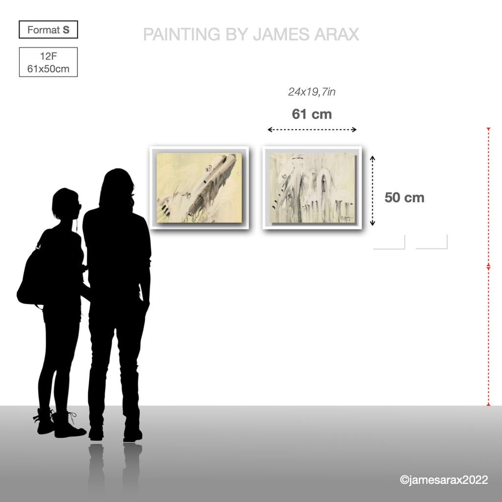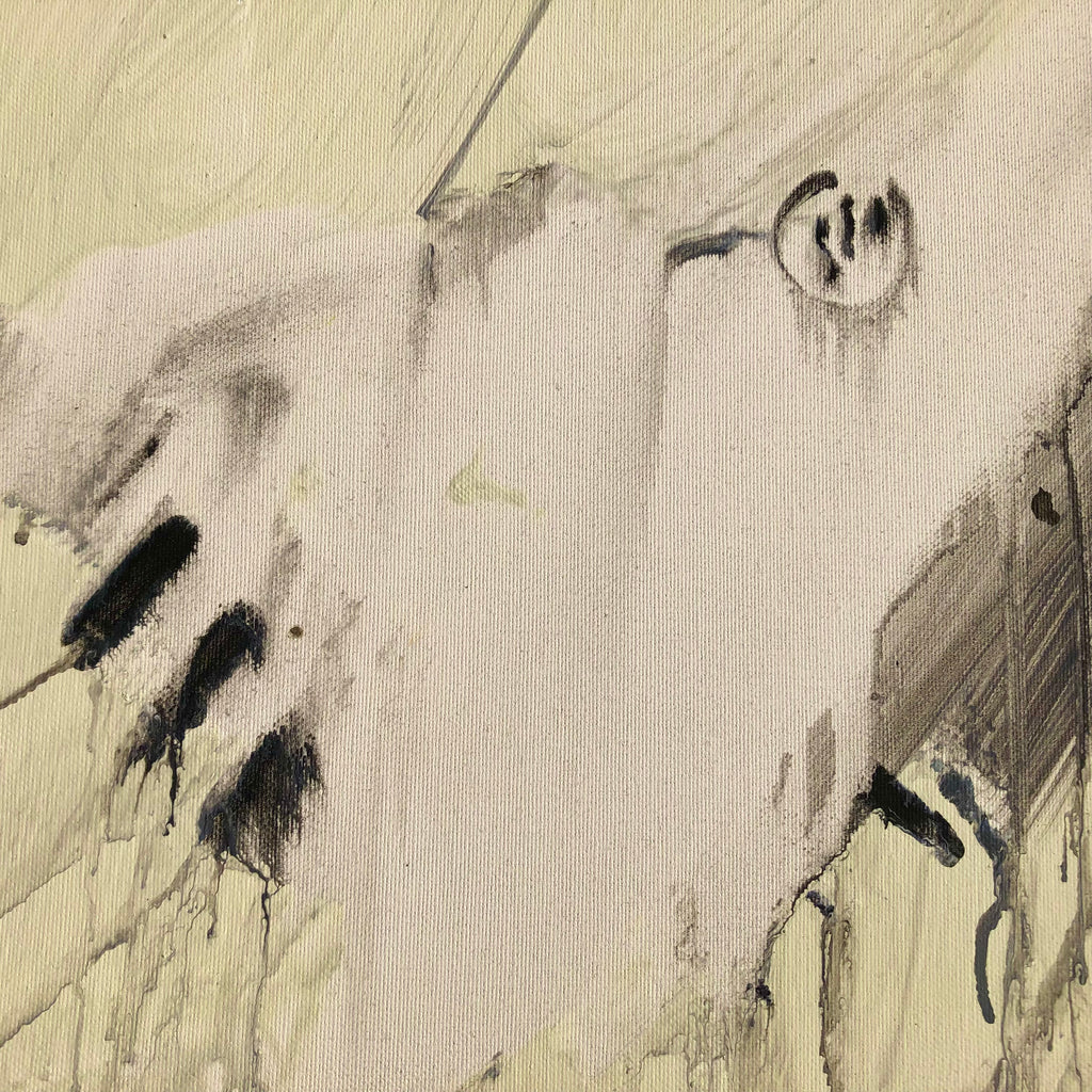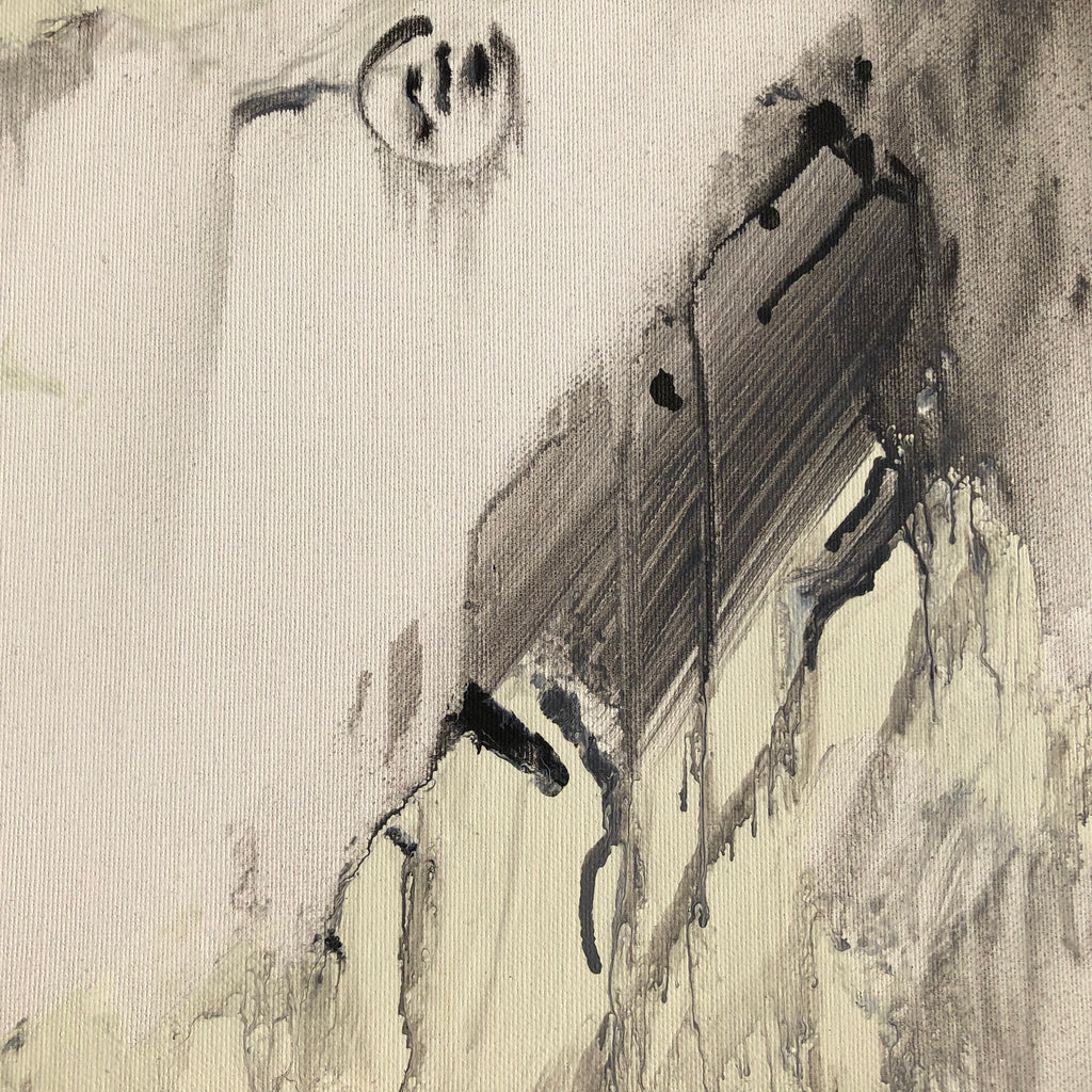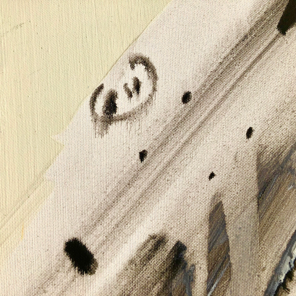Mixed technique: Acrylic, colored pigments, glue, black ink on canvas