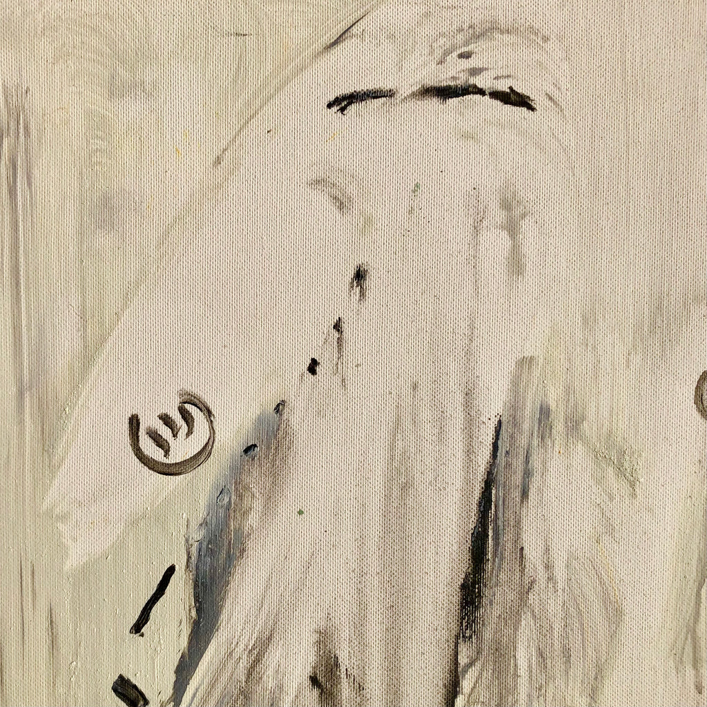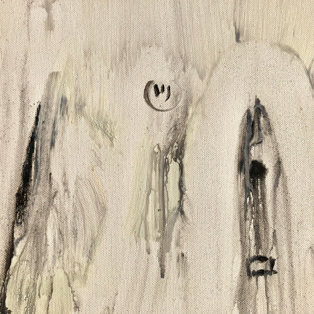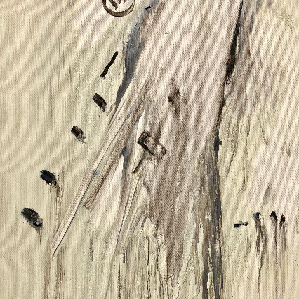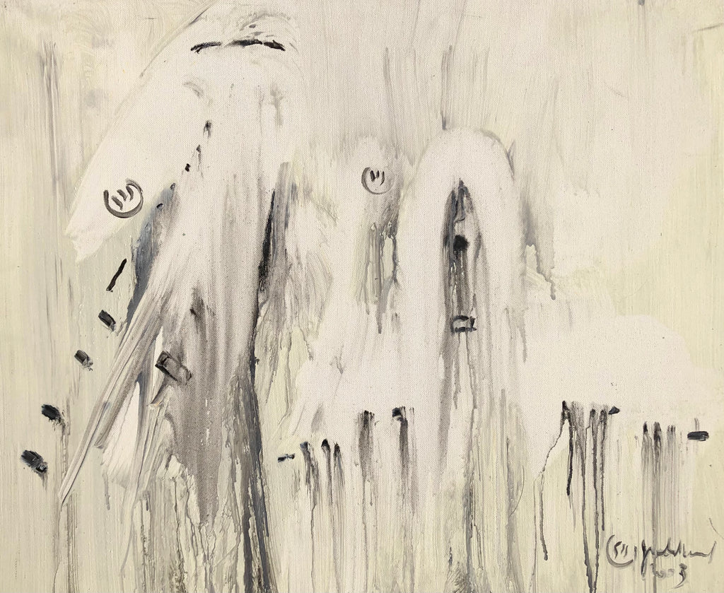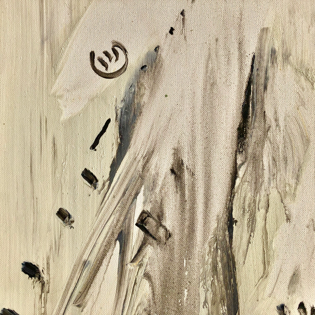 Mixed technique: Acrylic, colored pigments, glue, black ink on canvas