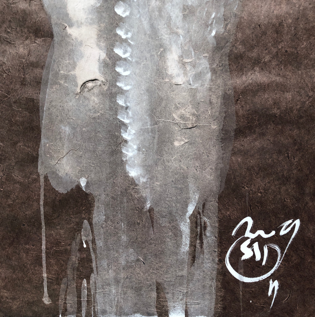 Signature: FACE acronym (sjs) bottom right with white ink - BACK James Arax