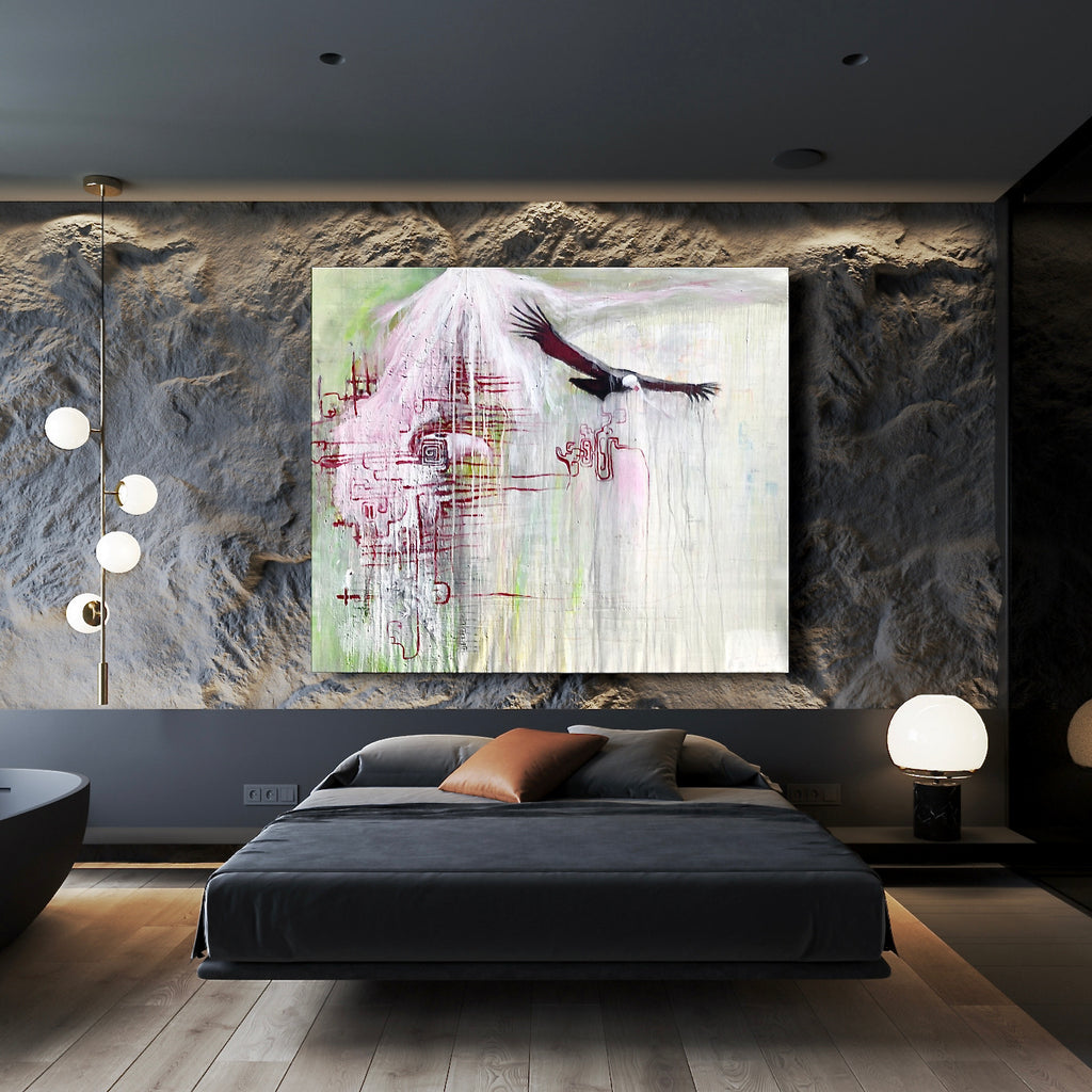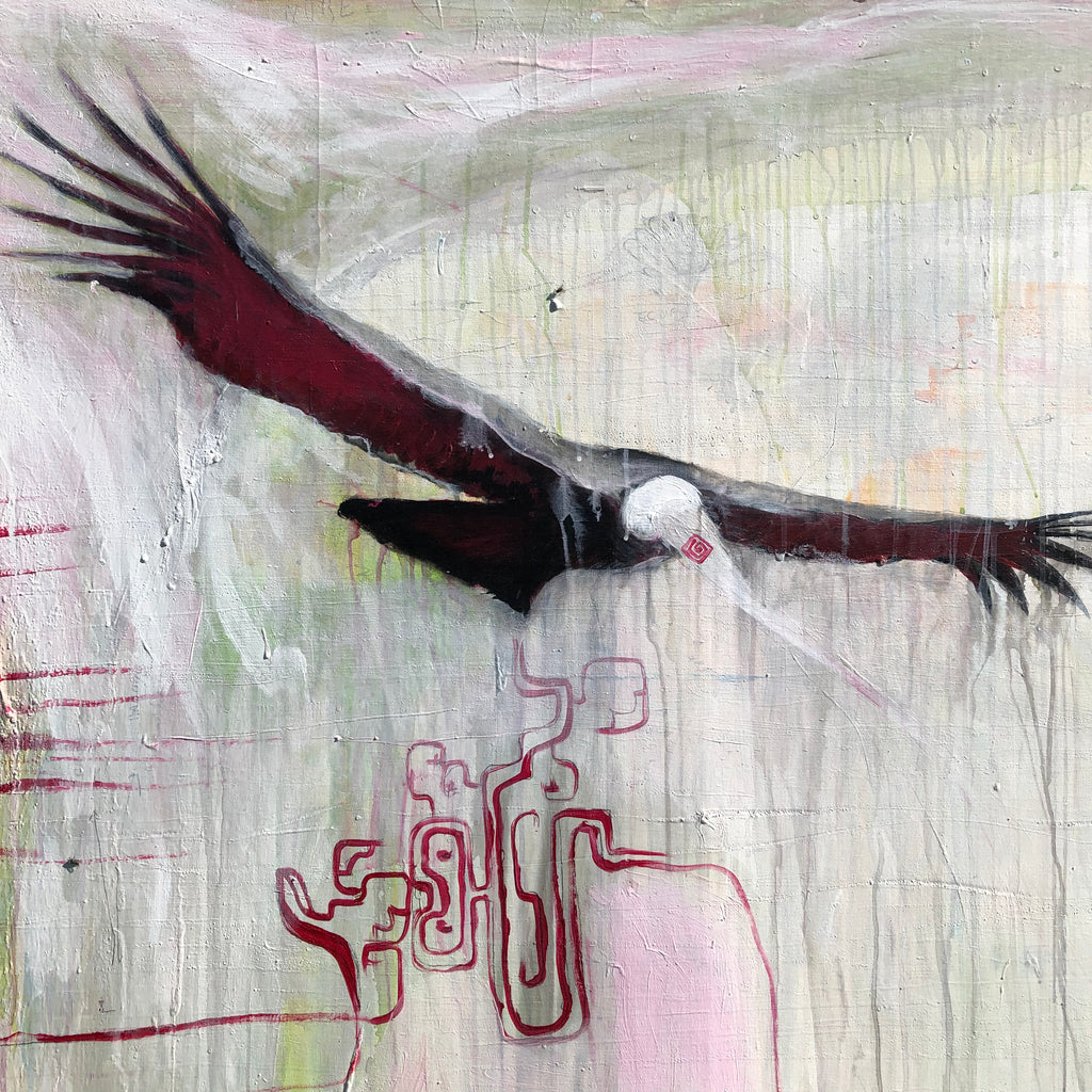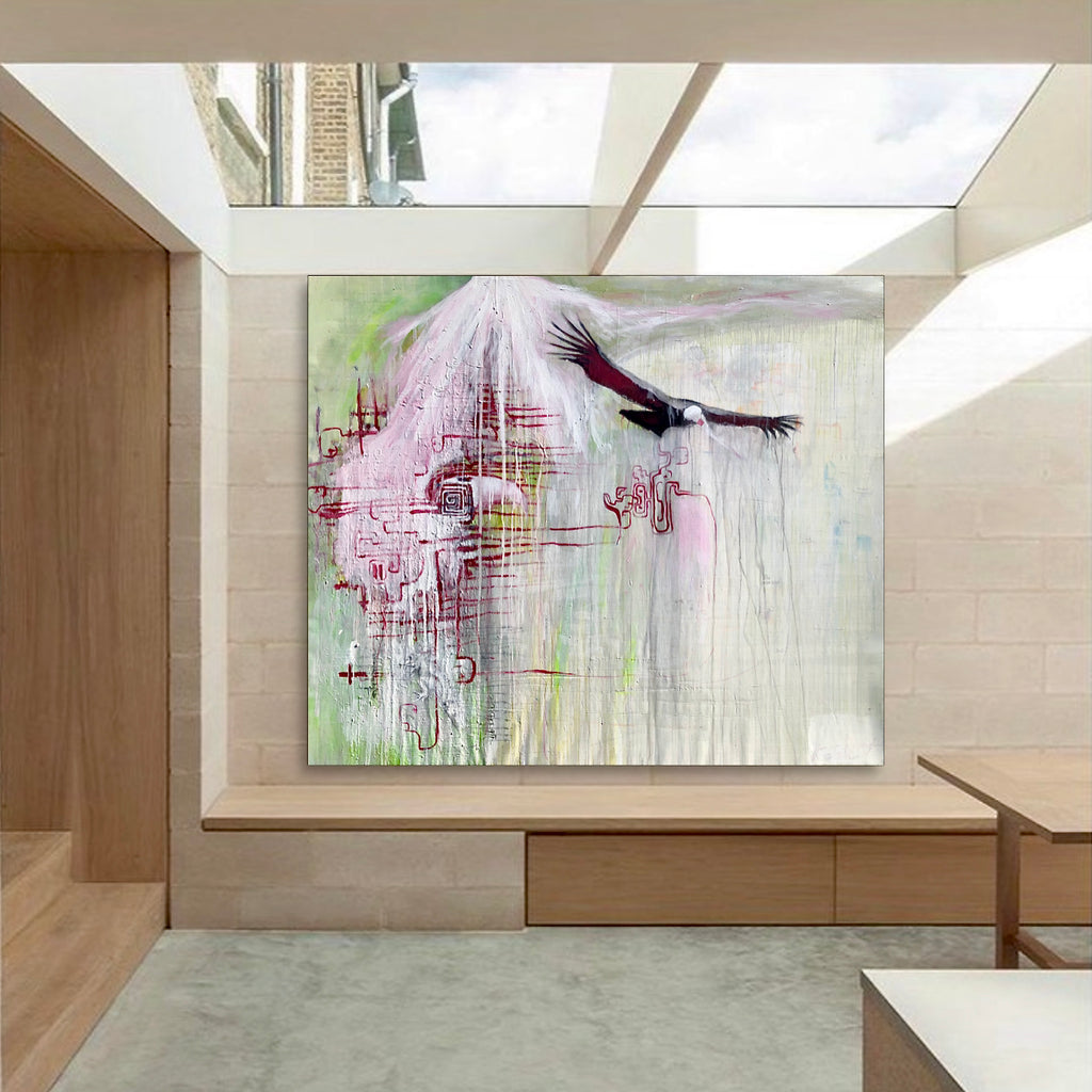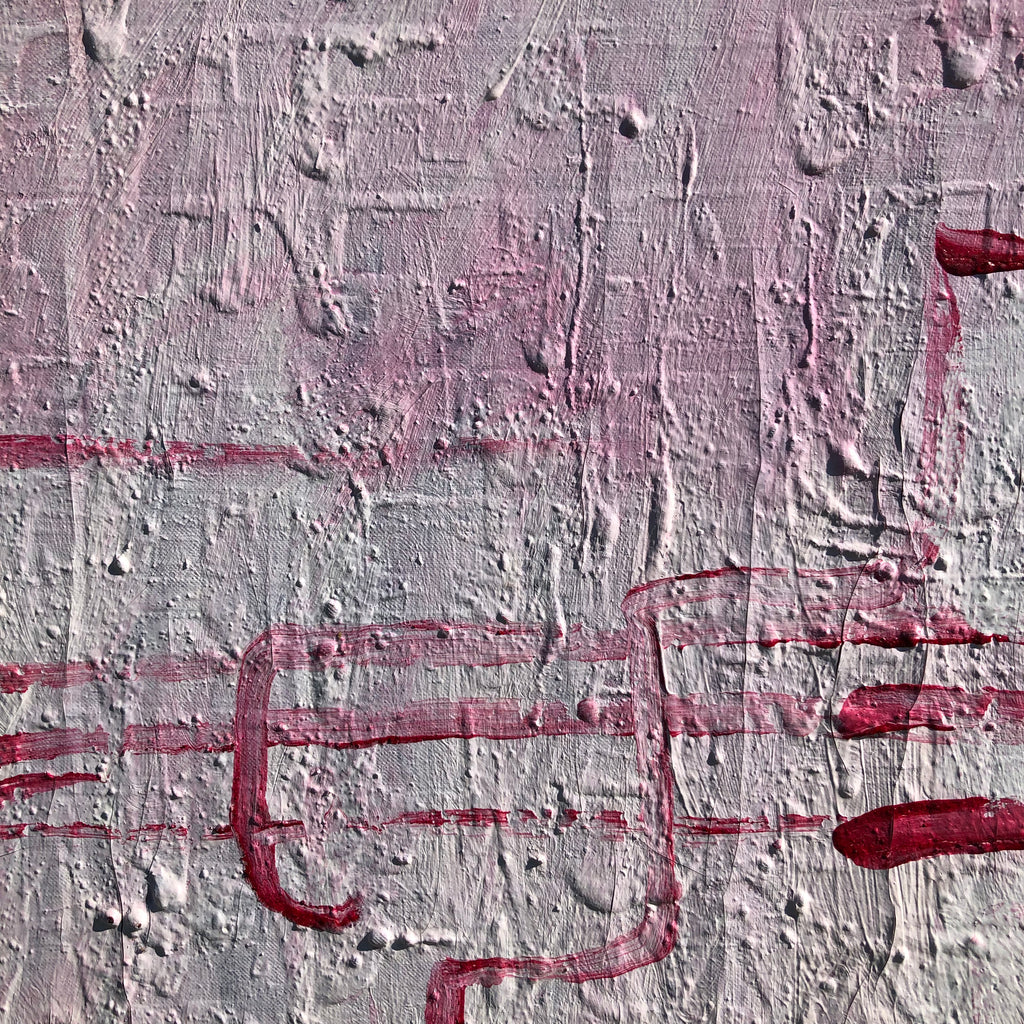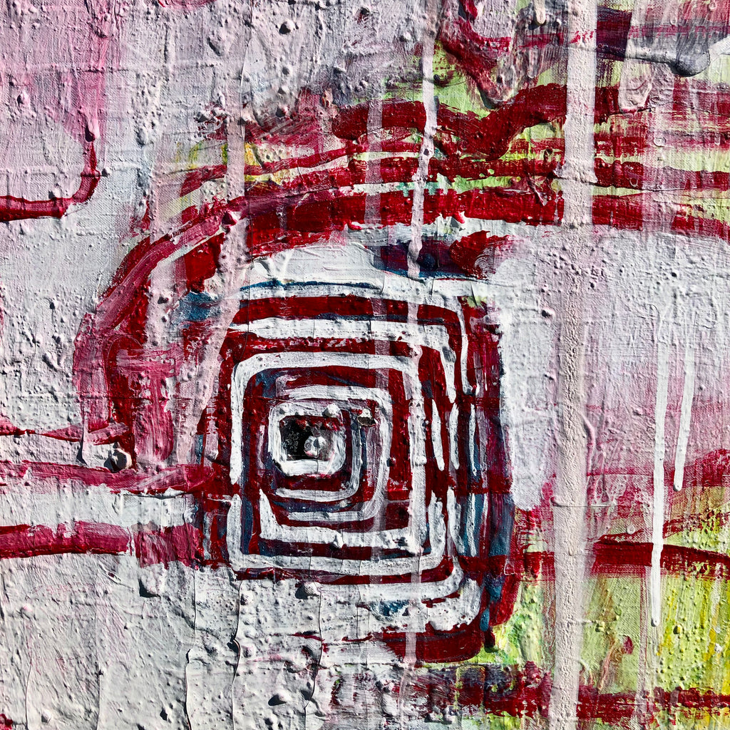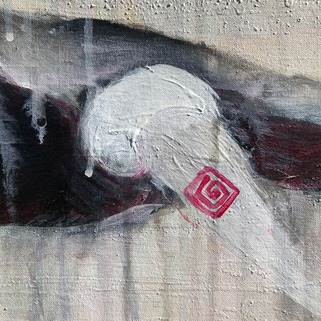 Mixed technique: Acrylic, colored pigments, lead pencil, glue, black ink on canvas