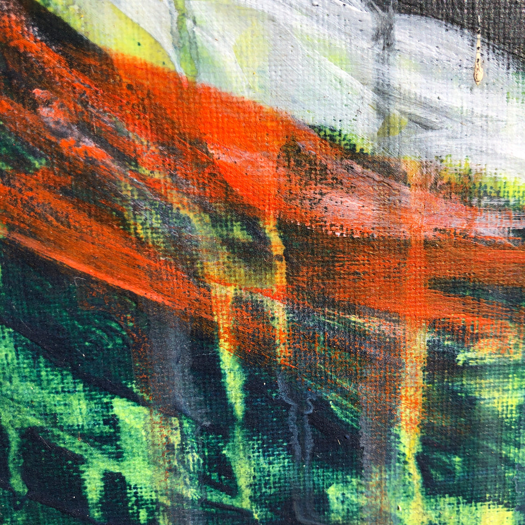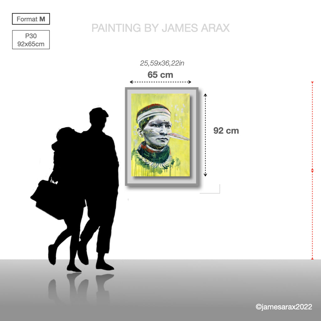 Mixed technique: Acrylic, colored and yellow pigments, glue, lead pencil, ink on canvas