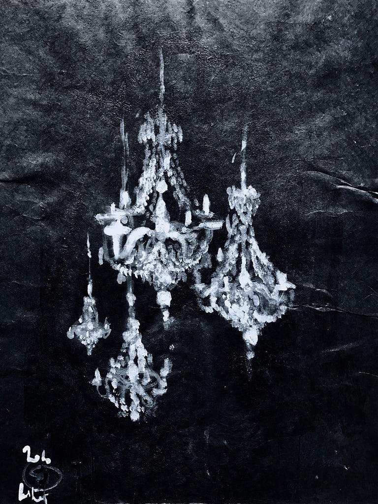 Special artwork for Black&White lovers. Here, the 4 chandeliers seem to be suspended in an intergalactic space. A tranquility and a calm emerge from this work...