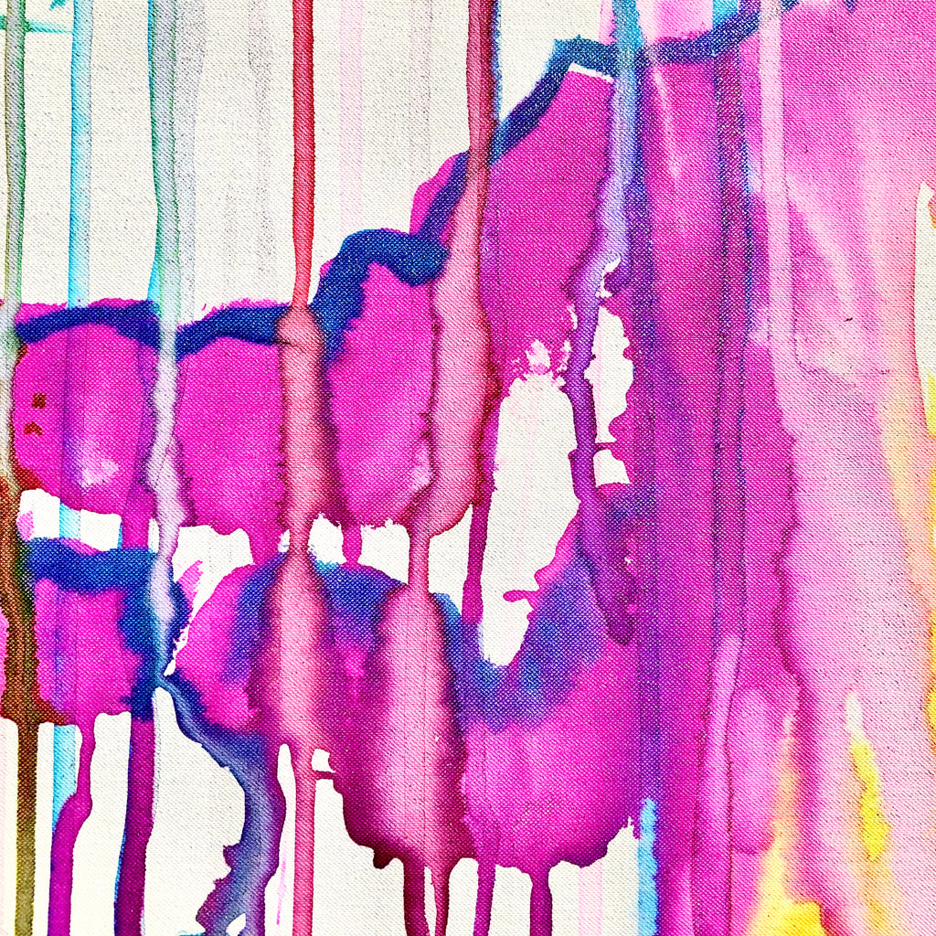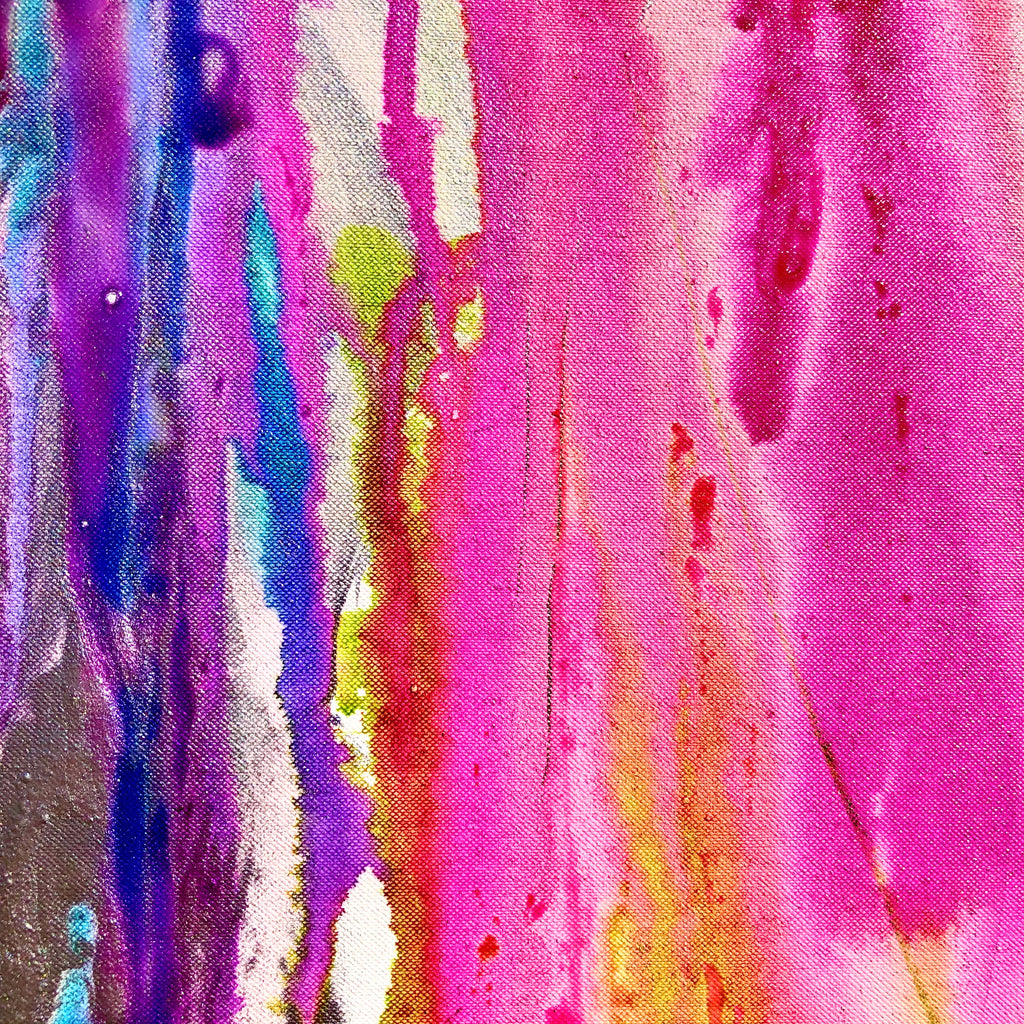 A layer of metallic paint is centered within the artwork, setting the escaping colors much like a ring would with a diamond.