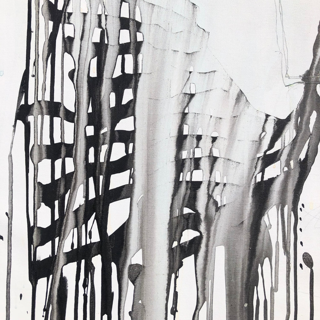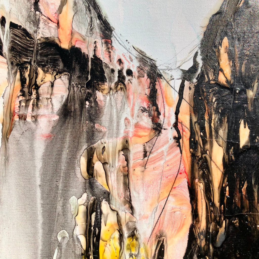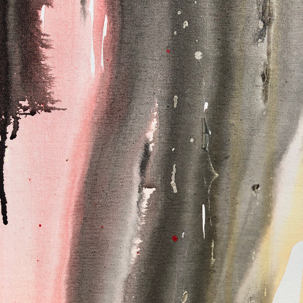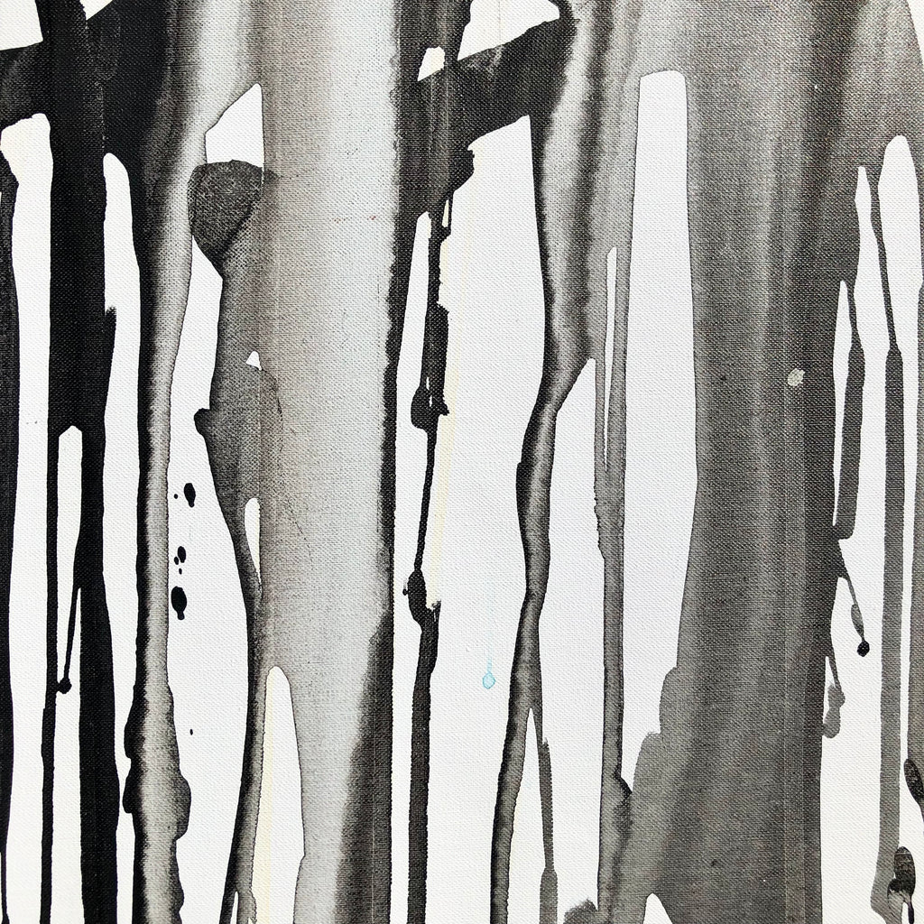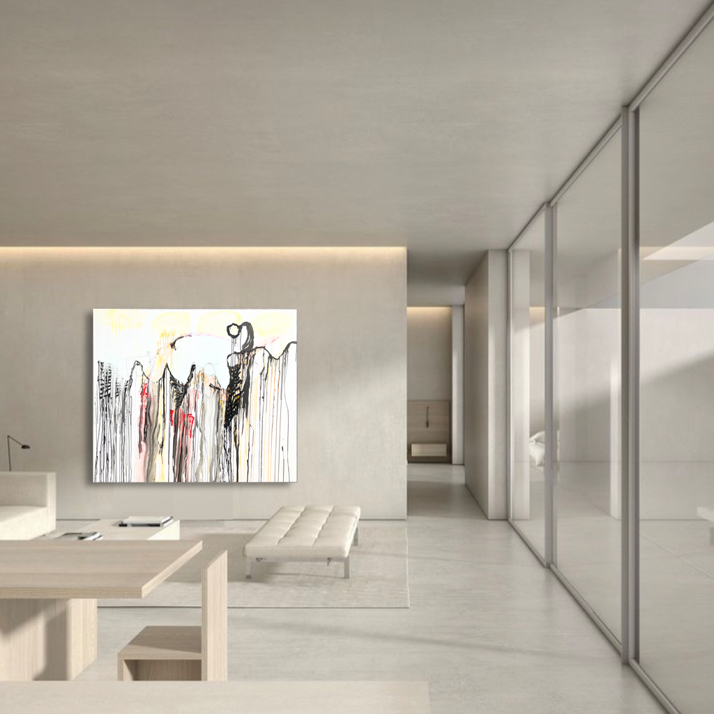 Finally a great strength emanates from the black ink forms which are counter balanced by the subtle contrasts of violet and yellow. This painting will find a place of choice in a minimalist living room. It will also integrate perfectly in a more cozy environment with the vertical lines that will match with the architectural lines of your space.