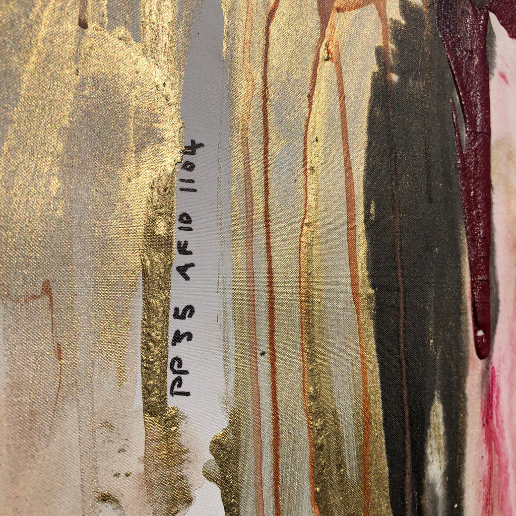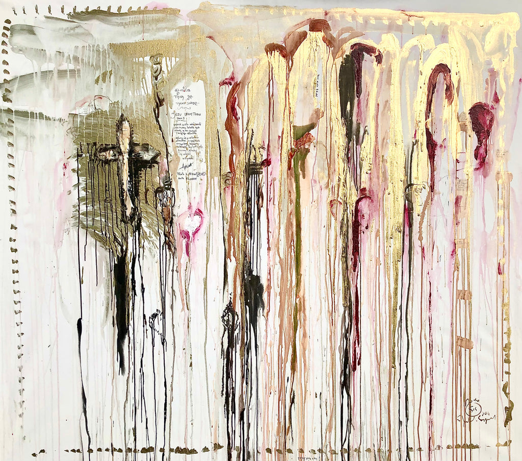 Mixed technique: Acrylic, gold pigments , coloured pigments, glue, ink on canvas