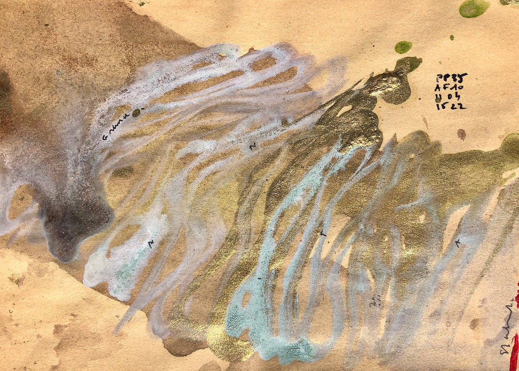 This XS painting is made on beige recycled paper, in James’s own watercolor technique. The beige of the paper is used as a background color. A very soft palette of light blues and cool whites creates a peaceful atmosphere...