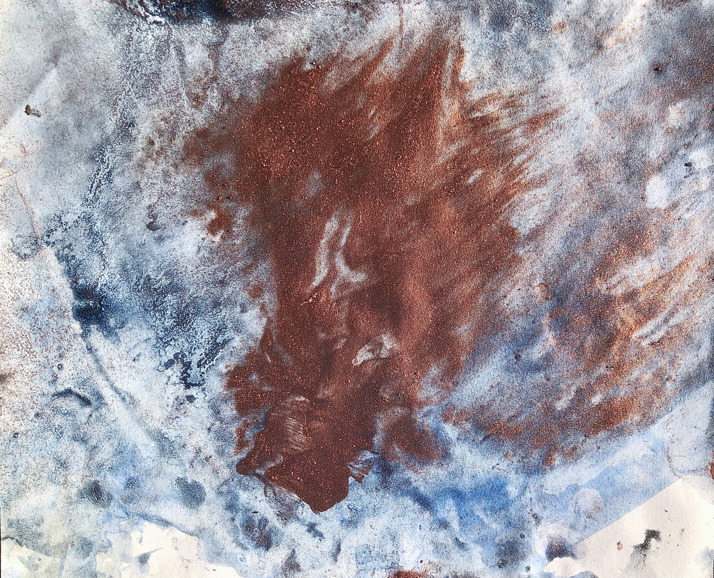 Mixed technique: Copper and colored pigments, glue, ink on paper