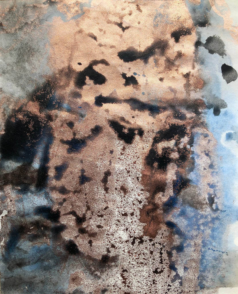 Mixed technique: Copper and colored pigments, glue, ink on paper