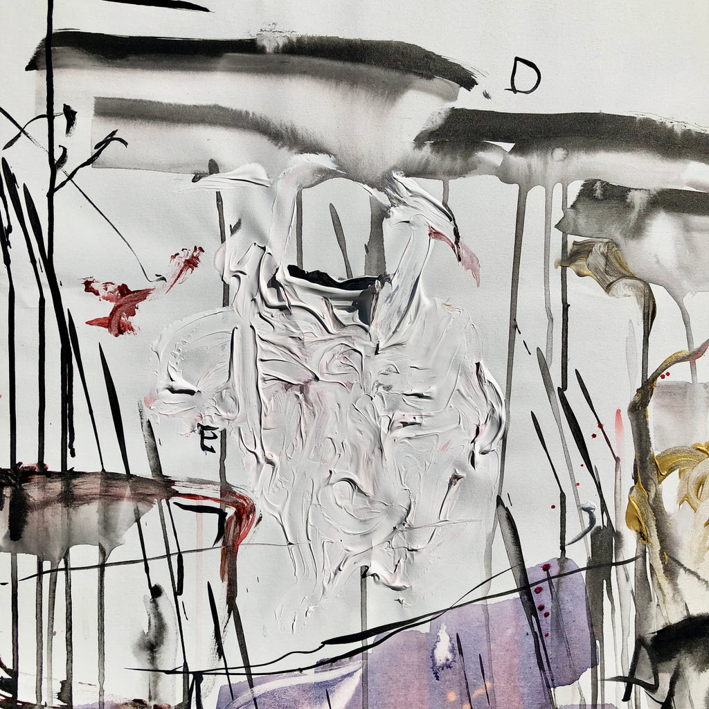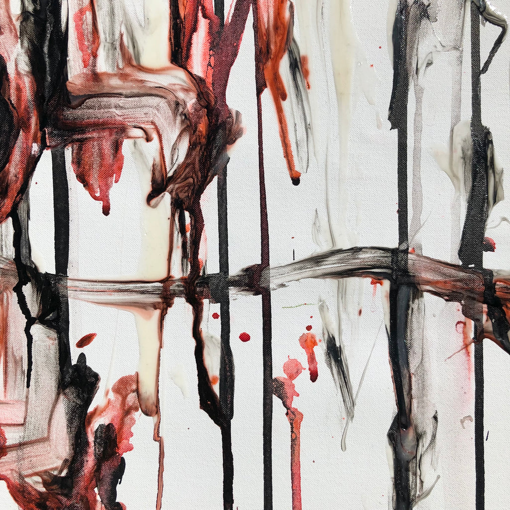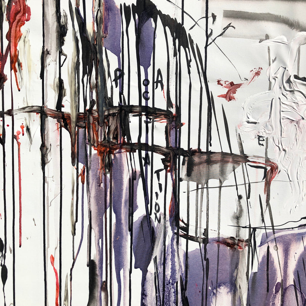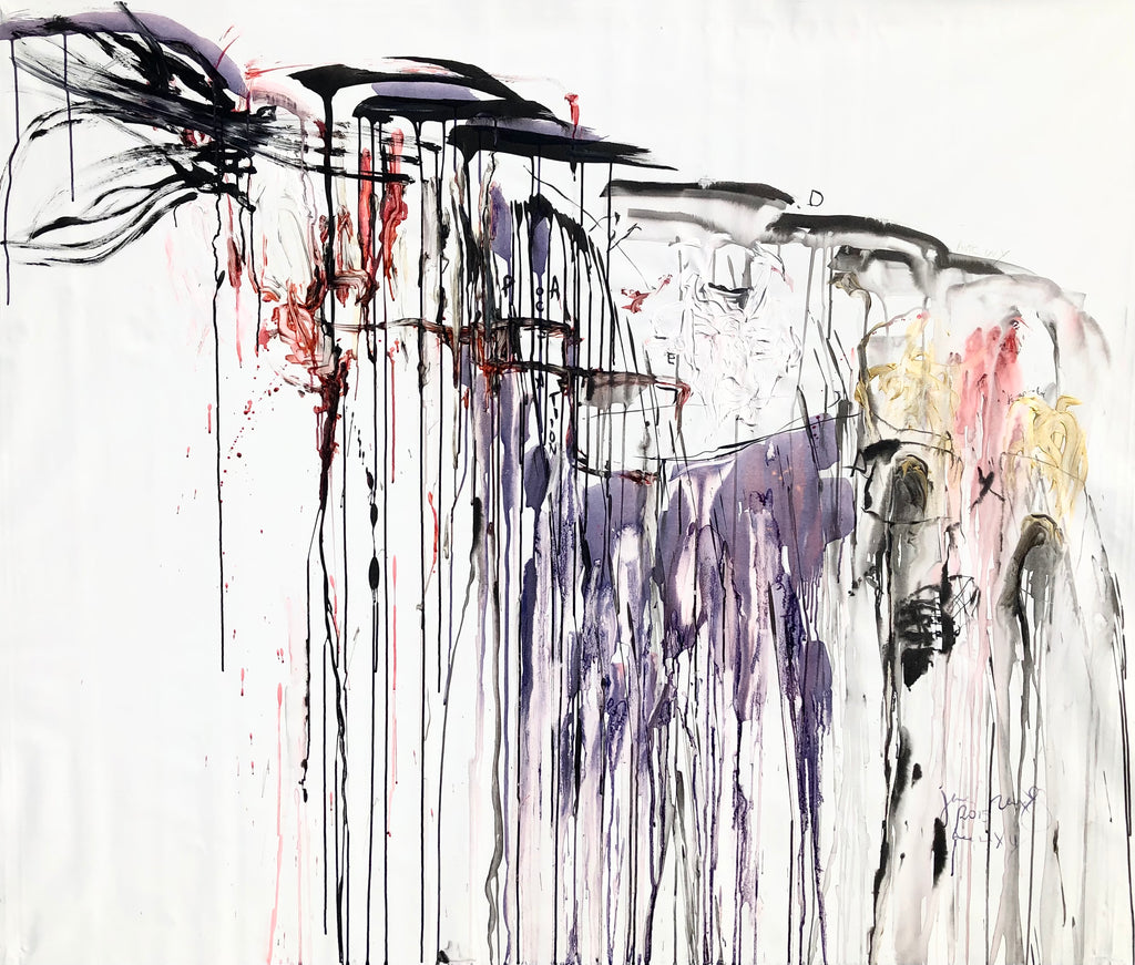 Mixed technique: Colored pigments, colored ink, acrylic binder on canvas