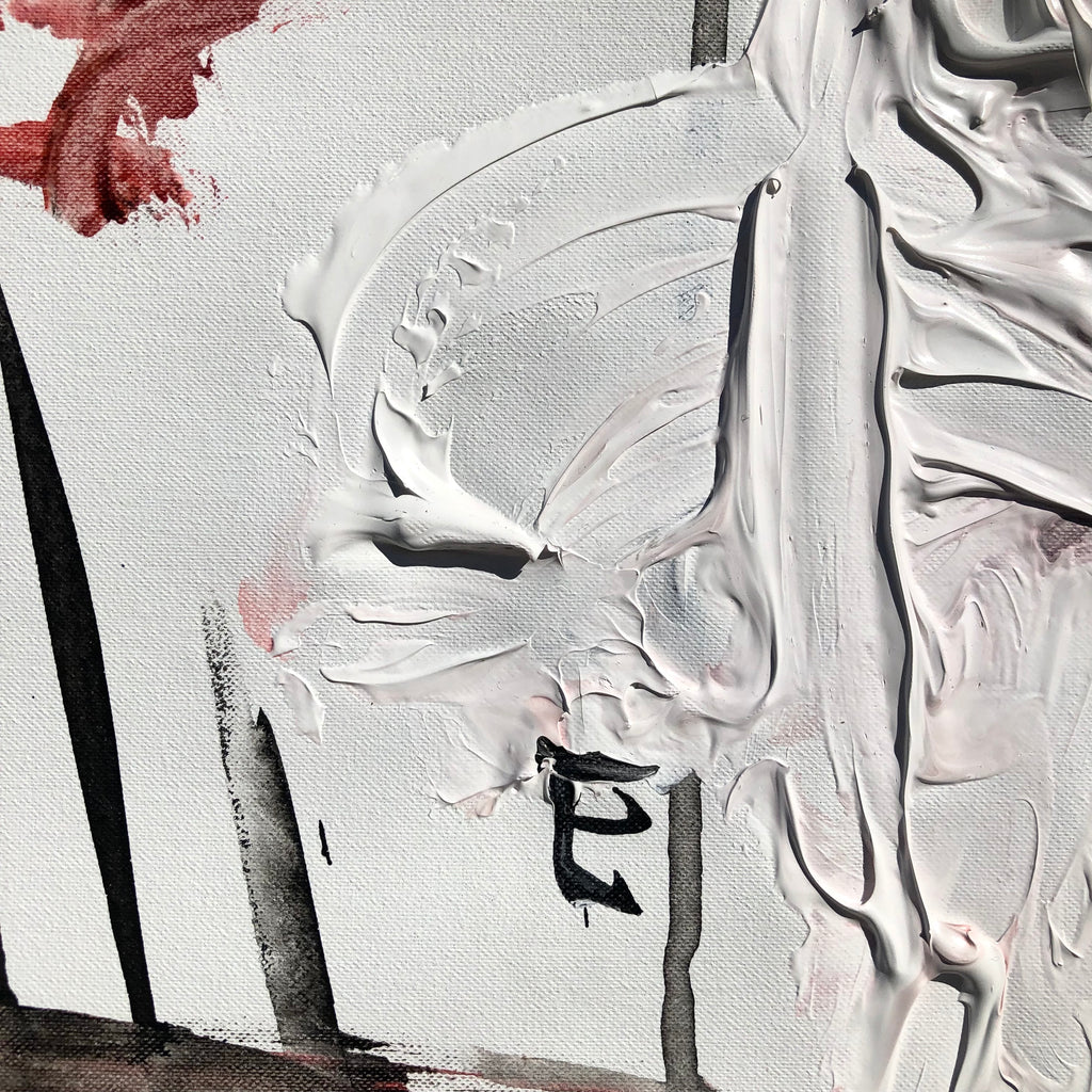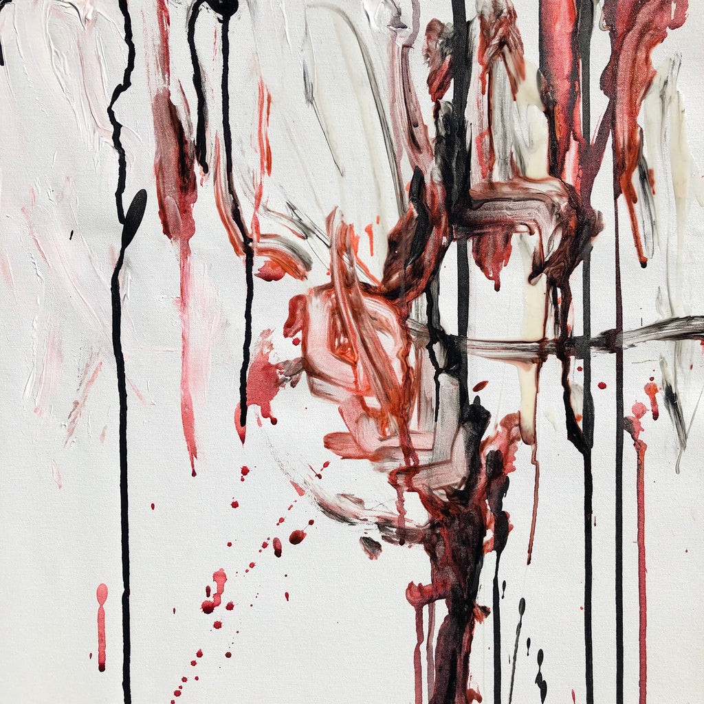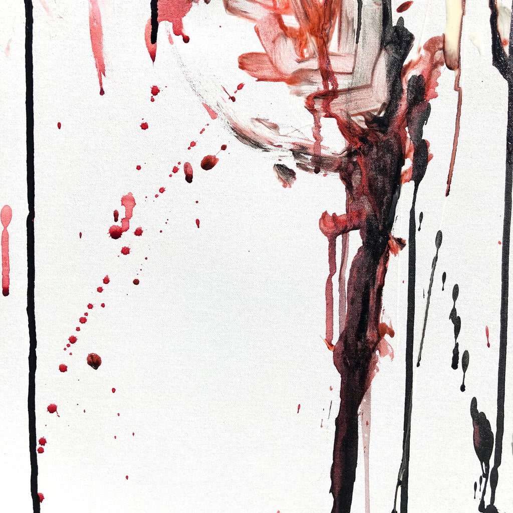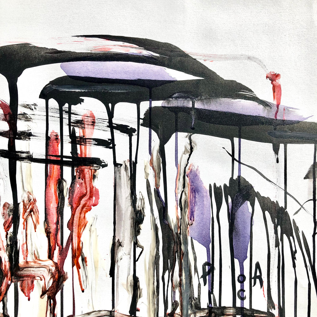… The painting is very strong with its long black lines like a waterfall in your space. It is the perfect painting for minimalist interiors as proposed in the pictures staged. It brings both movement and softness. The critics say this painting with James’s OpenFlow style is like a large kanji (Chinese character) with all his creativity and freedom. James has always been inspired by ancient techniques of Chinese calligraphy, reinterpreted here in a contemporary and arty vision.