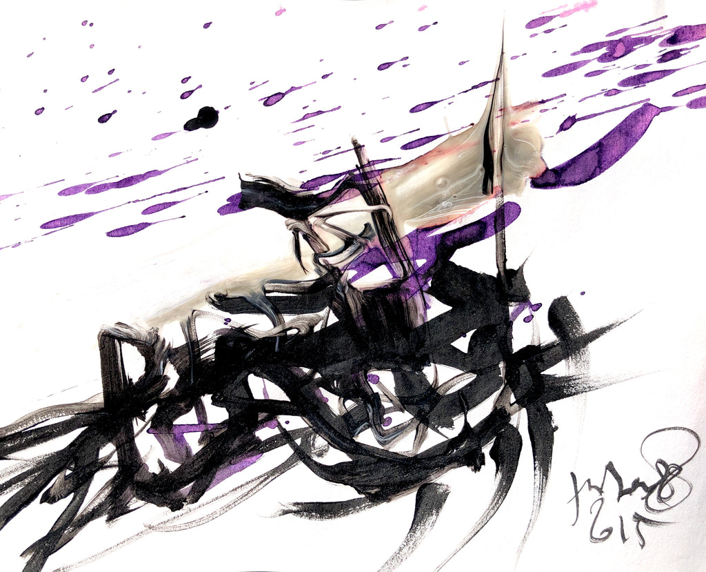 This XS painting is like a kanji (Chinese character) with all James’s creativity and freedom. The « purple rain » and drips give movement and energy...