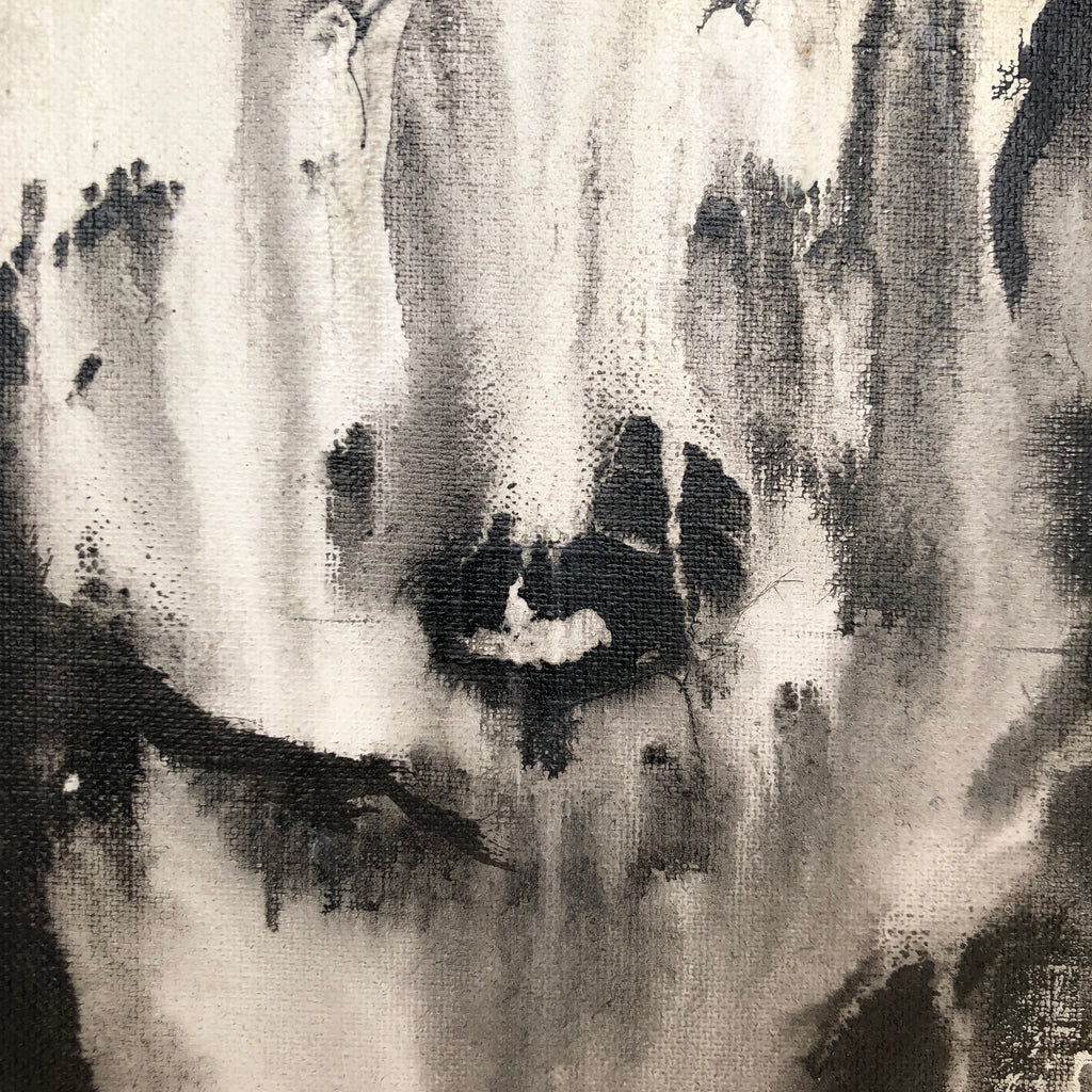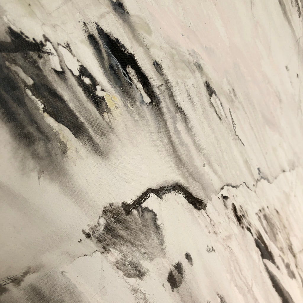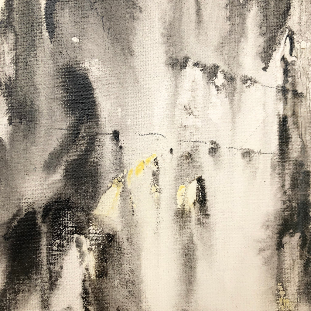 Mixed technique: Colored ink, yellow pigment, glue , lead pencil on canvas