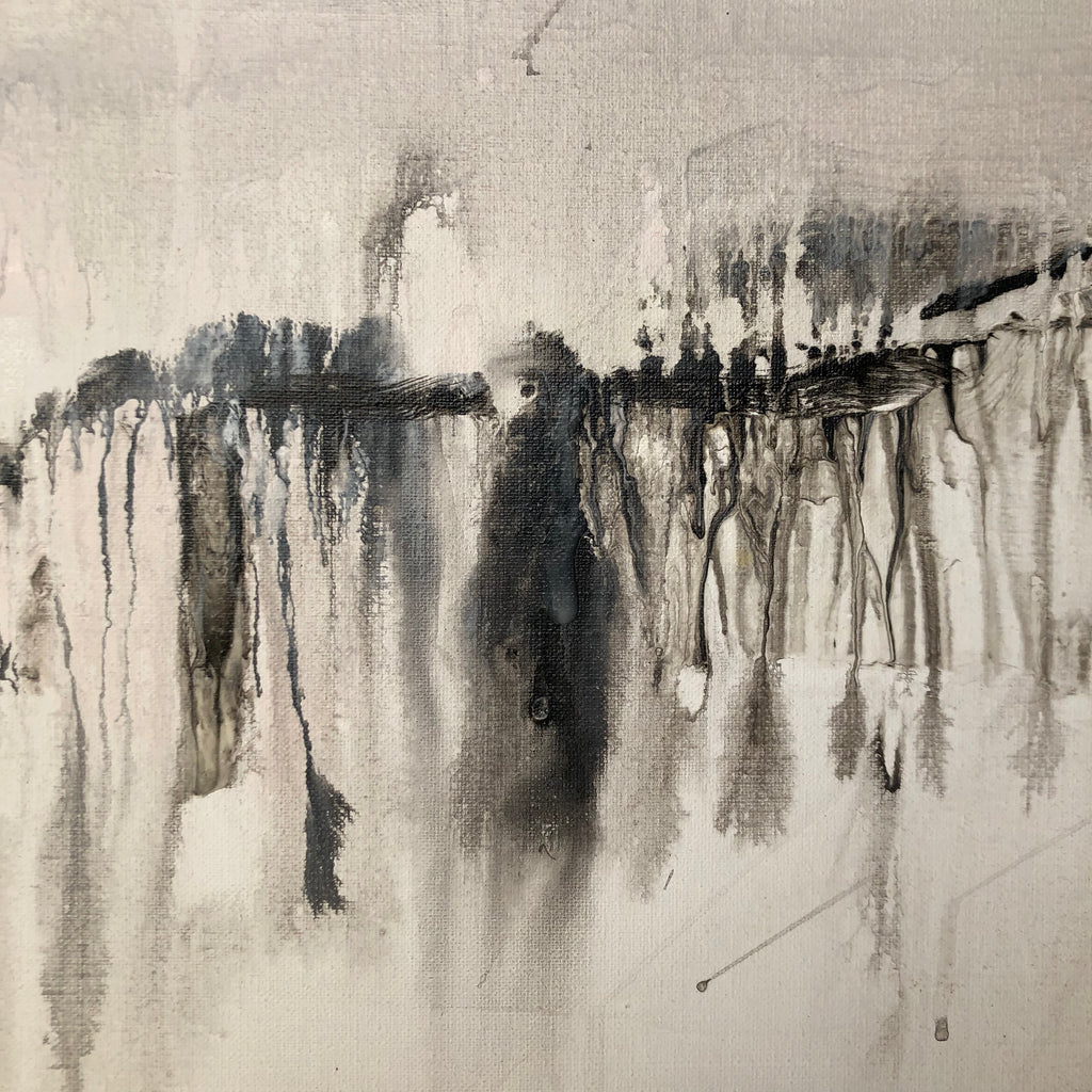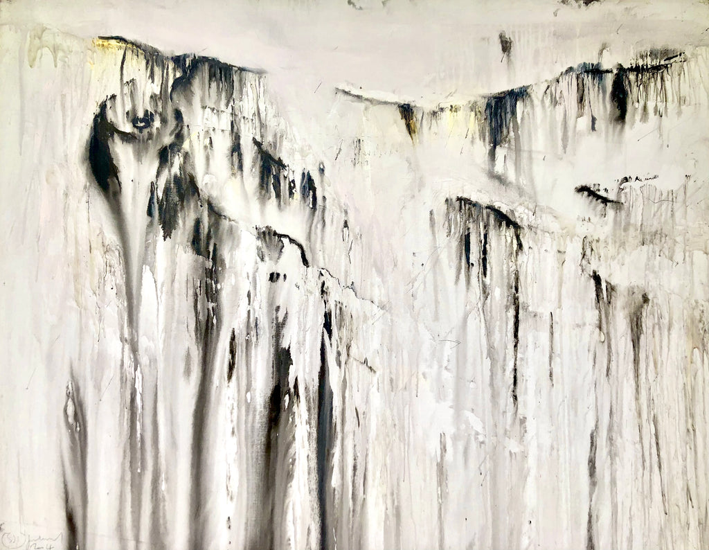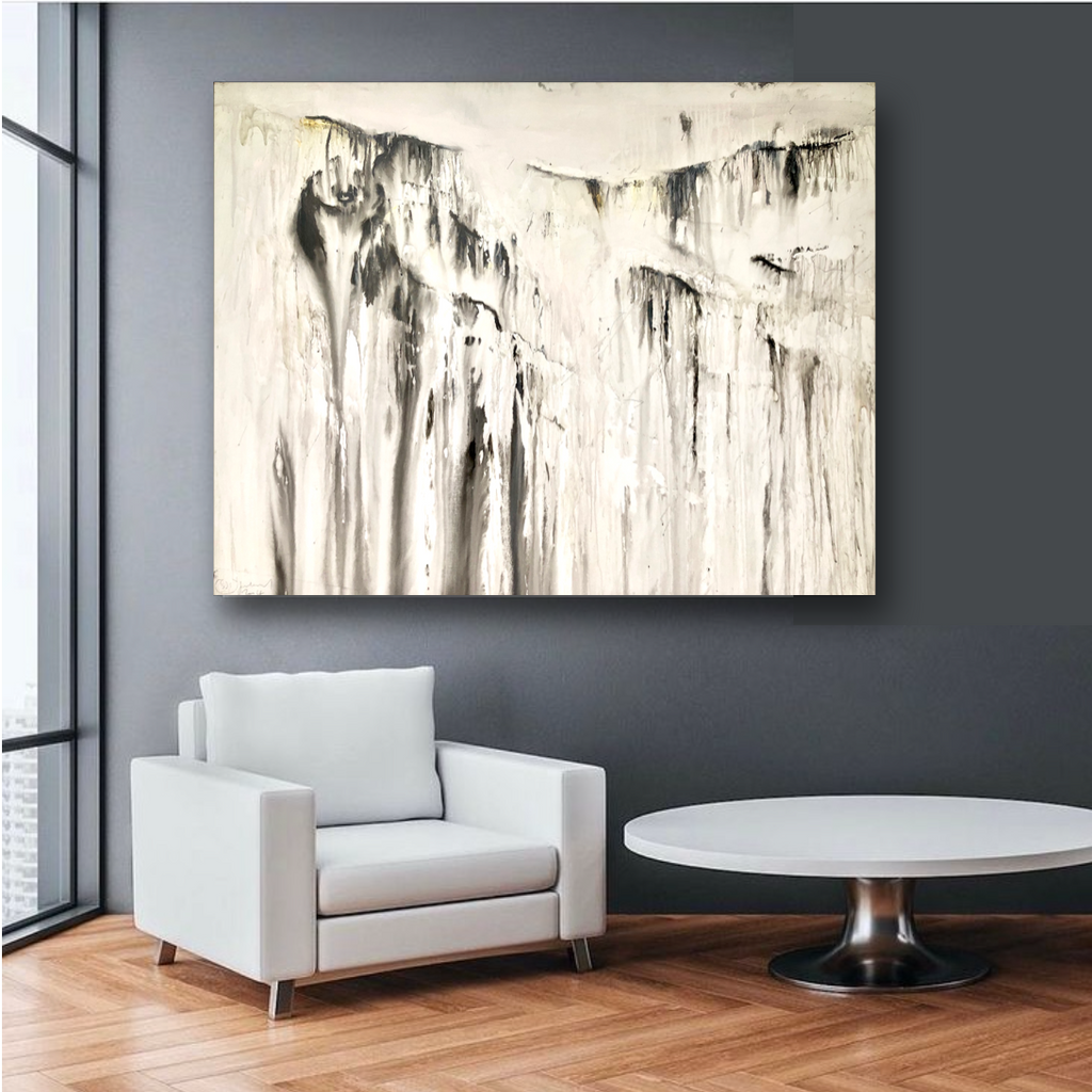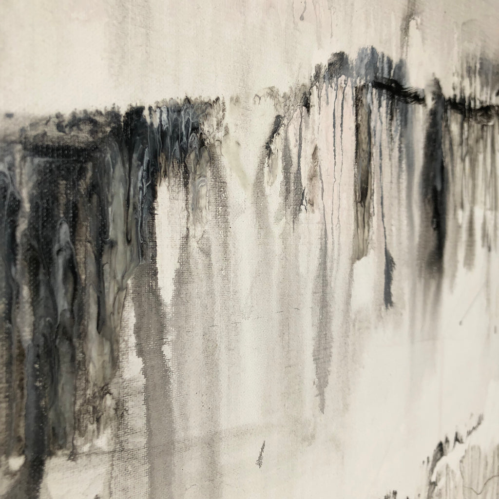 Mixed technique: Colored ink, yellow pigment, glue , lead pencil on canvas
