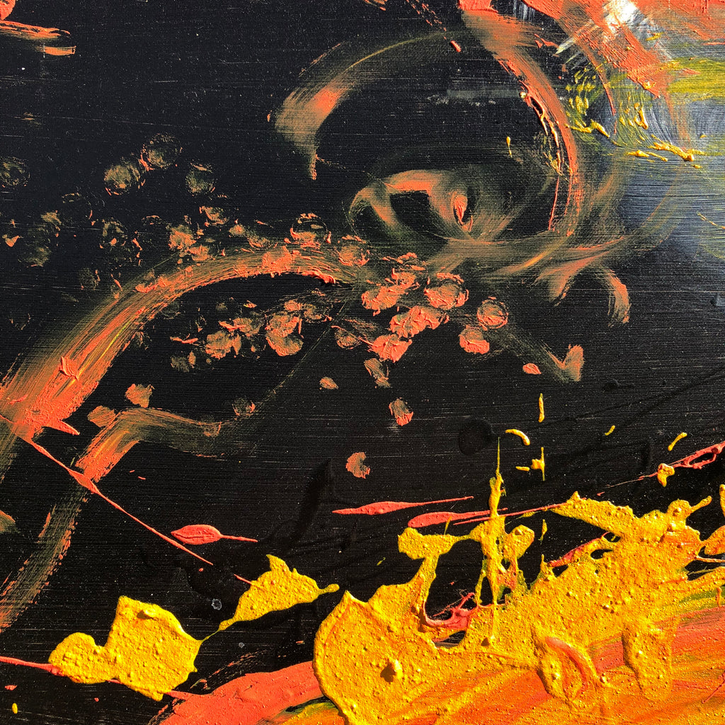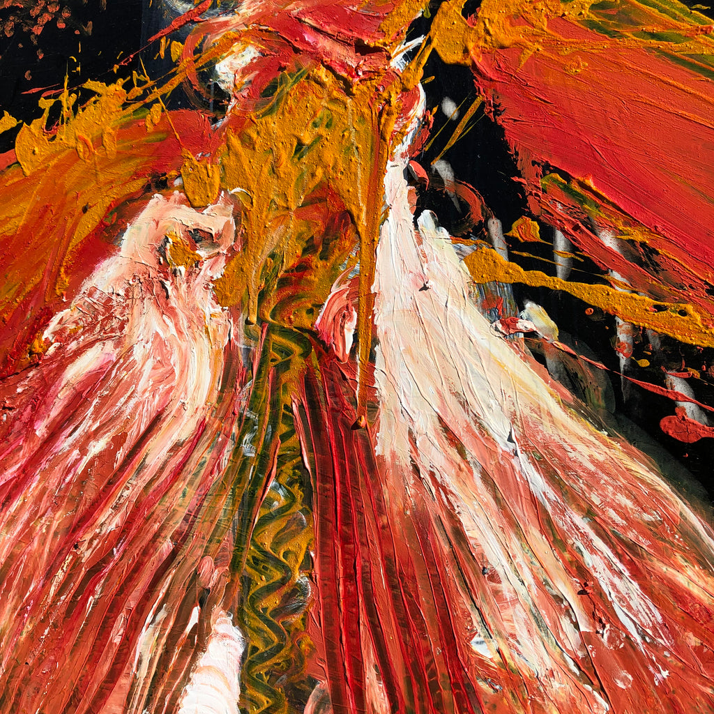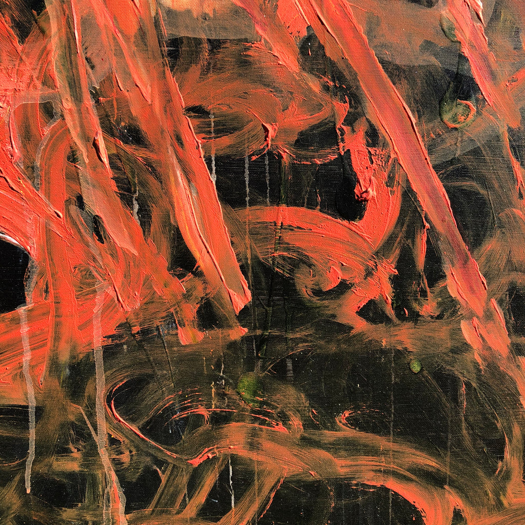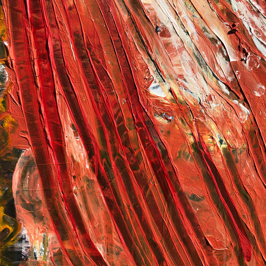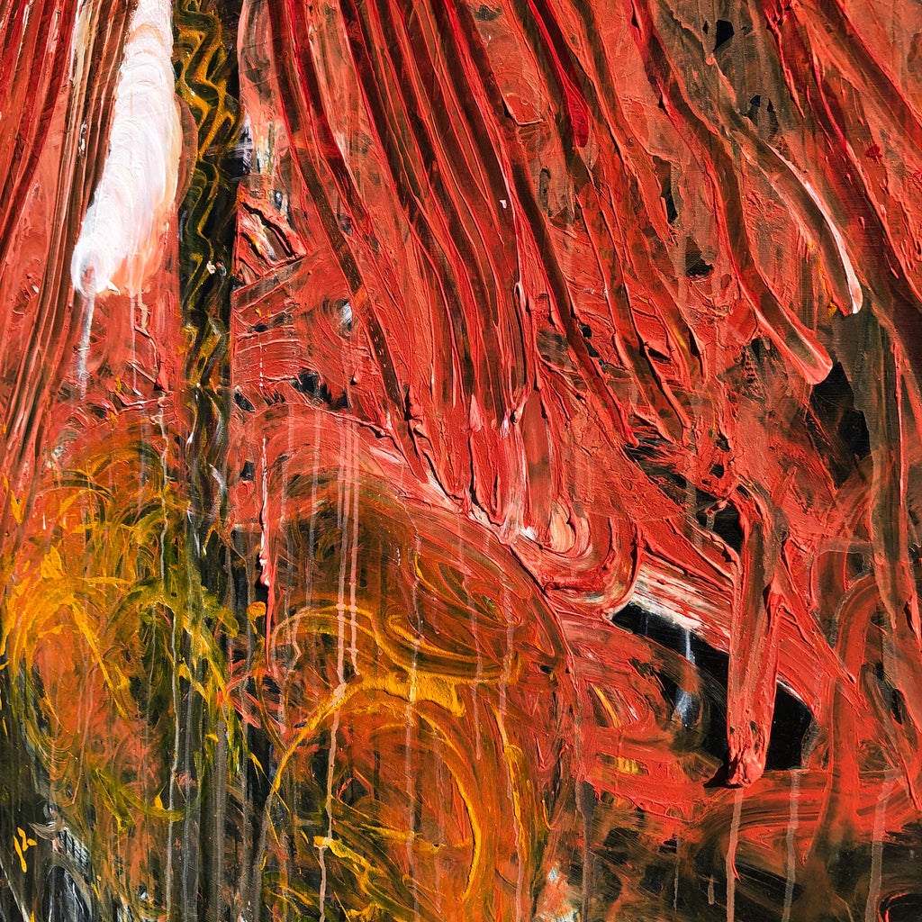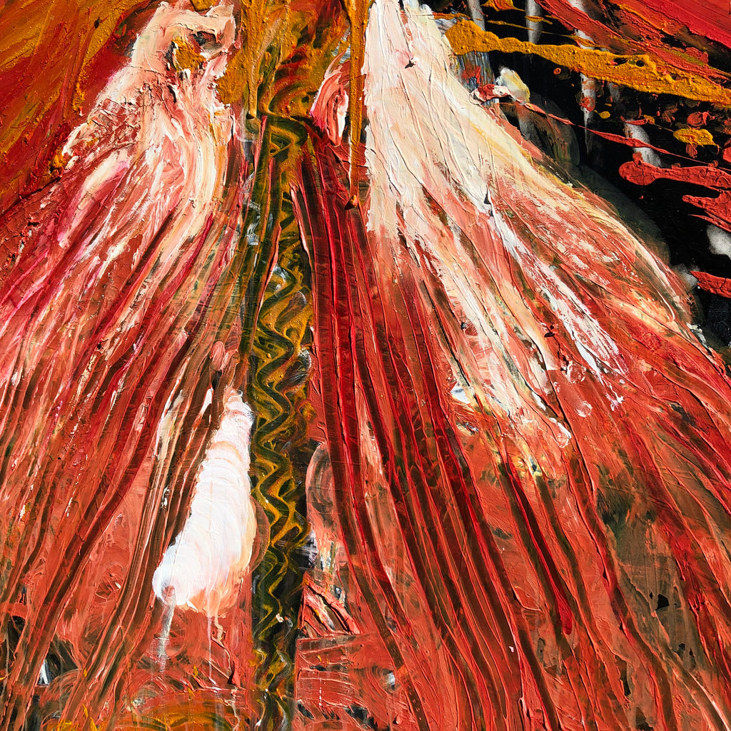 Mixed technique: Acrylic, colored pigments, glue, black ink on canvas